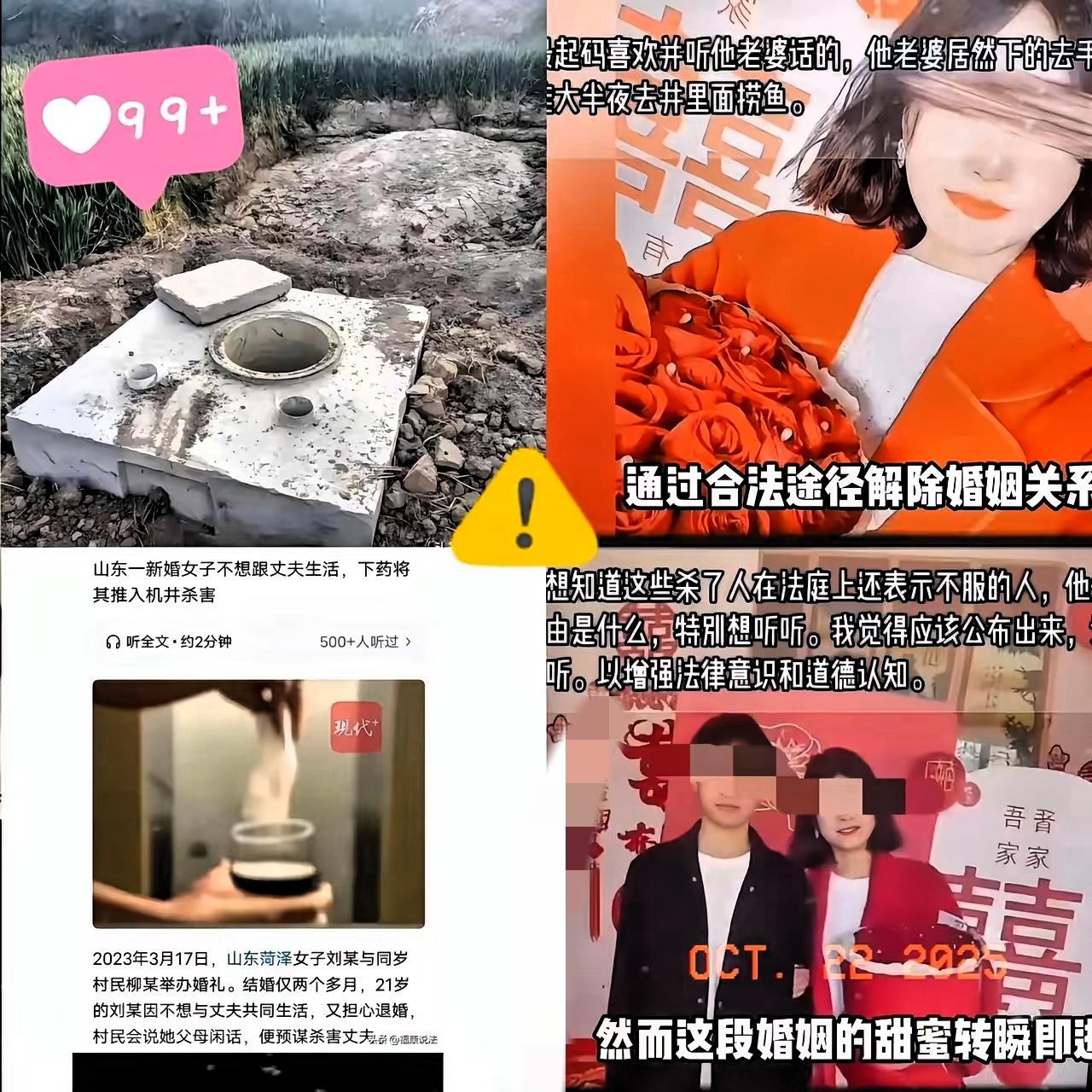 比潘金莲还狠! 山东菏泽这起案件,让人看完后背发凉。 一个21岁的姑娘,刚结婚两个月就厌倦了婚姻,却因为怕退婚丢脸,竟然下药哄丈夫下机井,眼睁睁看着他四次求救而不救,最后盖上井盖任其窒息。 这不是简单的“过不下去”,而是把“怕麻烦”当成了杀人的理由。 很多人说她冷血,但我觉得更可怕的是,她把“面子”看得比人命还重。婚姻本可以好聚好散,可她选择了用极端方式逃避问题,结果不仅害了别人,也毁了自己。 我始终认为,真正的体面不是死撑,而是有勇气面对错误和困境。 如果她当初能坦诚说“不”,也许悲剧就不会发生。面子可以丢,命却不能重来。 你觉得,在生活中,我们该如何平衡“面子”与“做人底线”的关系?