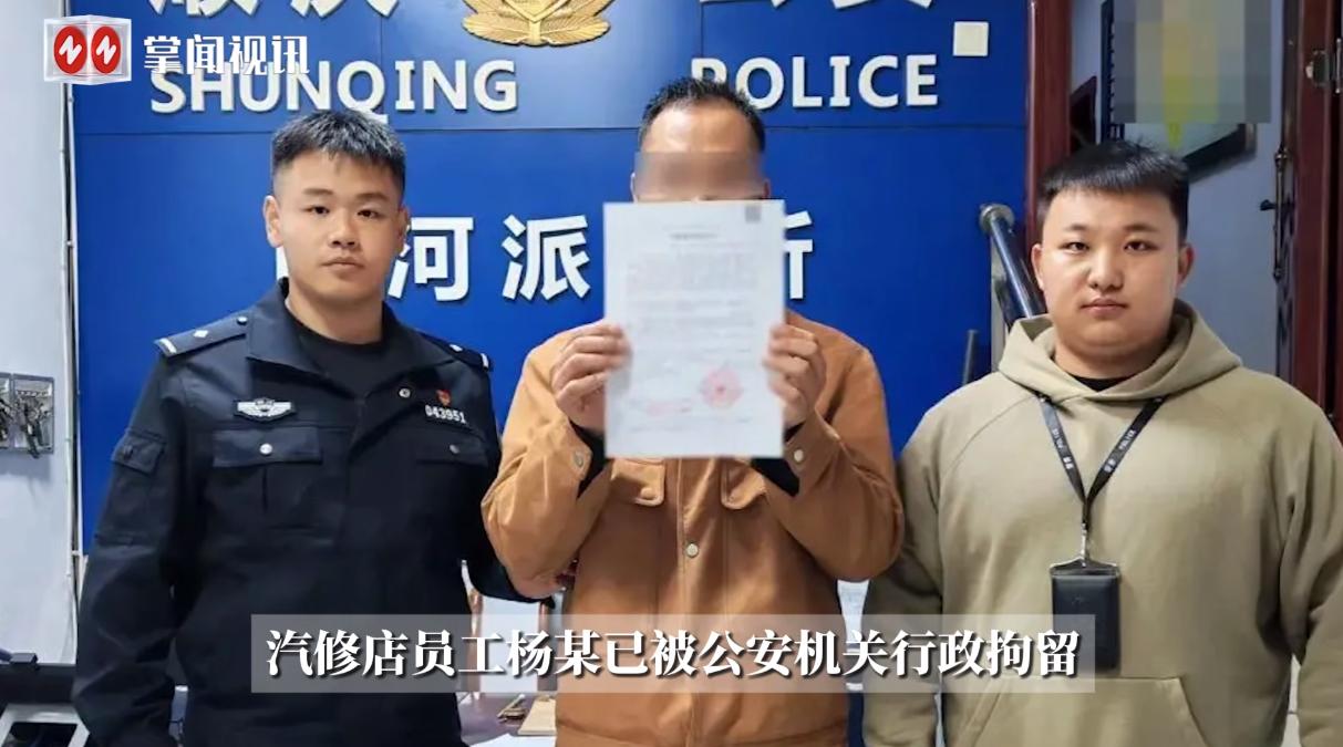 “这下后悔了吧!”22日报道,四川南充,一女子因为停车挡住了修车店的进出口通道,结果店员在和女子交涉无果后,竟直接拿改锥扎坏了女子的轮胎,女子当场报了警,事后不仅店主要出面道歉,员工还被开除并且被行政拘留!网友:何必逞这一时之快啊。 四川南充的一家汽修店最近摊上事了,就因为停车位的问题,店员杨某用改锥扎破了顾客的轮胎,结果自己被行政拘留,老板还得赔钱道歉。 事情发生在2025年10月18日下午,南充市顺庆区的这家汽修店门口,罗女士找不到车位,就把车停在了店门口的公共停车位上,店员杨某出来劝阻,说这里影响店里生意,但罗女士觉得自己就停几分钟,说了声就走了。 十分钟后罗女士回来,发现右后轮胎完全瘪了,她调出行车记录仪的画面,清清楚楚看到杨某拿着改锥走到车边,对着轮胎扎了下去,罗女士立刻报了警。 民警调查后认定,杨某的行为属于故意损毁他人财物。虽然只是扎破一个轮胎,但性质恶劣,依法对杨某作出行政拘留的处罚,汽修店老板也赶紧出来善后,公开道歉并承担了更换新轮胎的全部费用。 这事看起来是个案,其实反映的是城市停车难的普遍现象,现在车越来越多,停车位却跟不上,很多商户门口的公共车位经常被占用,影响生意是常有的事,但问题在于再着急再生气,也不能用违法的方式解决。 按照治安管理处罚法的规定,故意损毁他人财物要承担法律责任,情节较轻的行政拘留或罚款,情节严重的还可能构成刑事犯罪,杨某这次就是典型的冲动行为,本想出口气,结果把自己搭进去了。 类似的停车纠纷其实不少见,去年山东烟台有个案子,车主违停挡住路口,导致其他车辆躲避时发生事故,法院判违停车主承担一半责任,还有四川盐亭的案例,车主和店主因为停车位争执,动手把对方绊倒,最后赔了两万多医疗费。 生活中难免有摩擦,但处理方式决定了最终的结果,用违法手段发泄情绪,只会让小事变大,害人害己。 “这老板也太横了!公共车位画线就是给大家用的,你开店就能成地盘了?拿锥子扎胎手法还那么溜,一看就不是头一回干,车主都说了停十分钟就回来,至于下这狠手吗?四条胎全扎瘪,这损失可不小,够上立案标准了,拘得一点不冤。” “我住附近,这家店占车位是老毛病了!天天拿木板、锥桶挡着位子,还说“车位坏了”,更绝的是,门口好端端的行道树都被他们用水泥糊了,人行道也削成斜坡给自己用。城管来了装装样子,走了继续占,这回踢到铁板,活该!” “关键是扎完胎还拍视频“喊冤”,问“为啥是我错”?这波操作简直了……网友不傻,公共资源啥时候成店家私产了?还好行车记录仪拍得清清楚楚,不然真被倒打一耙。” “我觉得双方都有问题,车主明知店家不让停,硬要停确实有点杠;但店家反应过激,直接毁财物就是违法,现在好了,员工被拘、店被骂臭,何必呢?好好沟通或者报警挪车不行吗?” “最新进展,员工被行拘,老板道歉赔轮胎了!但网友扒出这店还打着“退伍军人”名头宣传,干这种事真给群体抹黑。希望城管趁这机会把他们私改的路沿、填树的坑都查干净!” “这种店谁敢去修车?今天扎胎,明天指不定对客户车子动什么手脚。反正我是不敢去,技术再好也怕人品差啊。” “其实很多小店都觉得门口地界是自己的,但公共车位就是政府的,商户只有门前三包责任,没权独占,以后遇到这种,别吵,直接录像报警,让法律教他们做人。” 这事您站哪边?如果您遇到商家长期占用公共车位,会怎么处理?来评论区说说高招! 信源:掌闻视讯