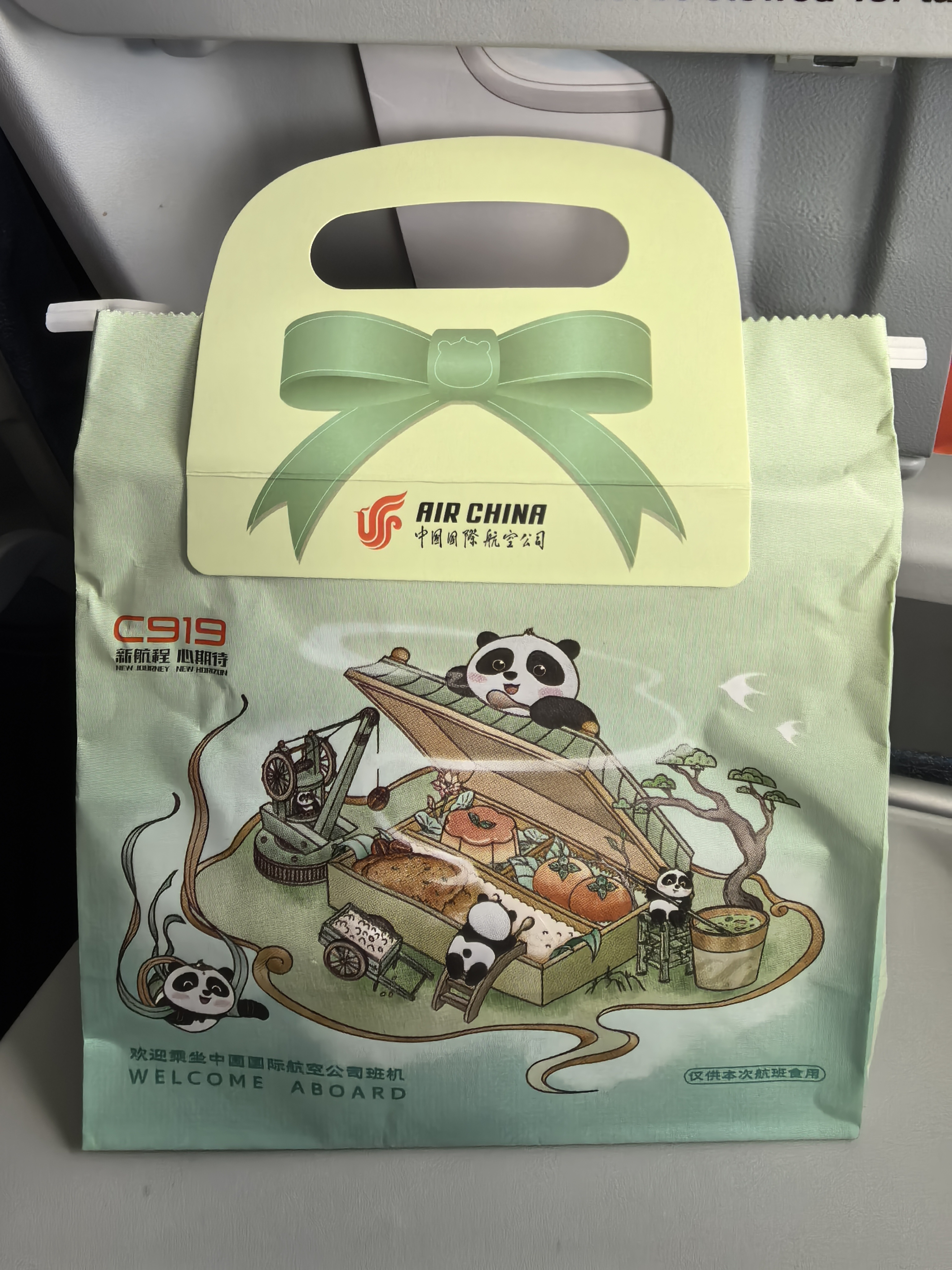 国航C919航班专用的食品袋,蛮有特色,感觉是想大家多用几次这个小袋,不然设计成手提袋是几个意思?……那就留下了![送花花][坏笑]