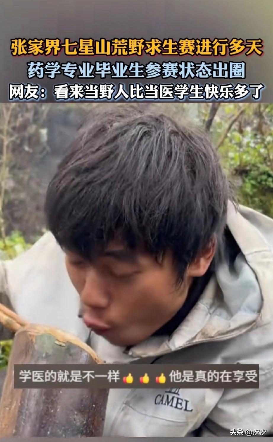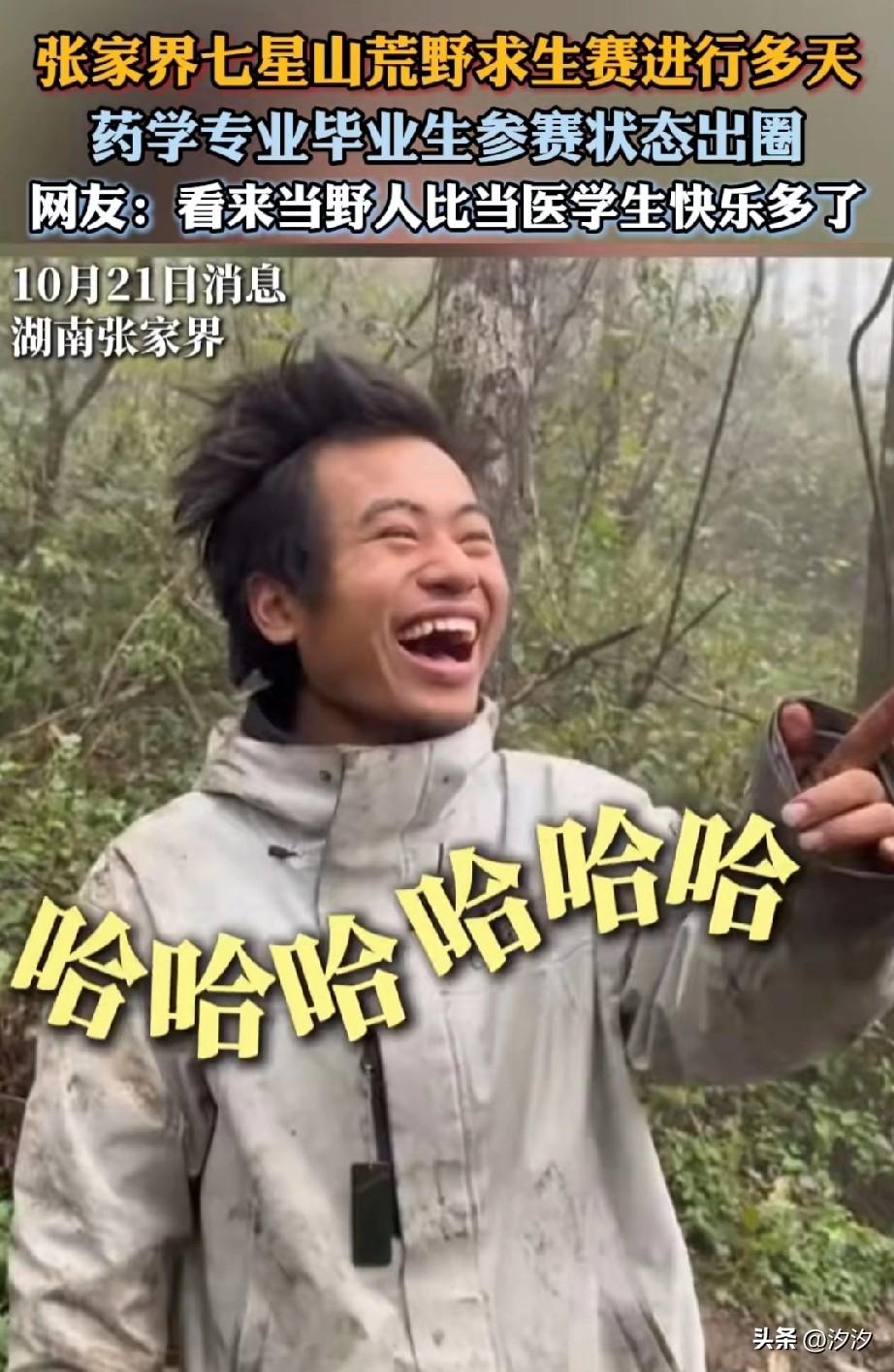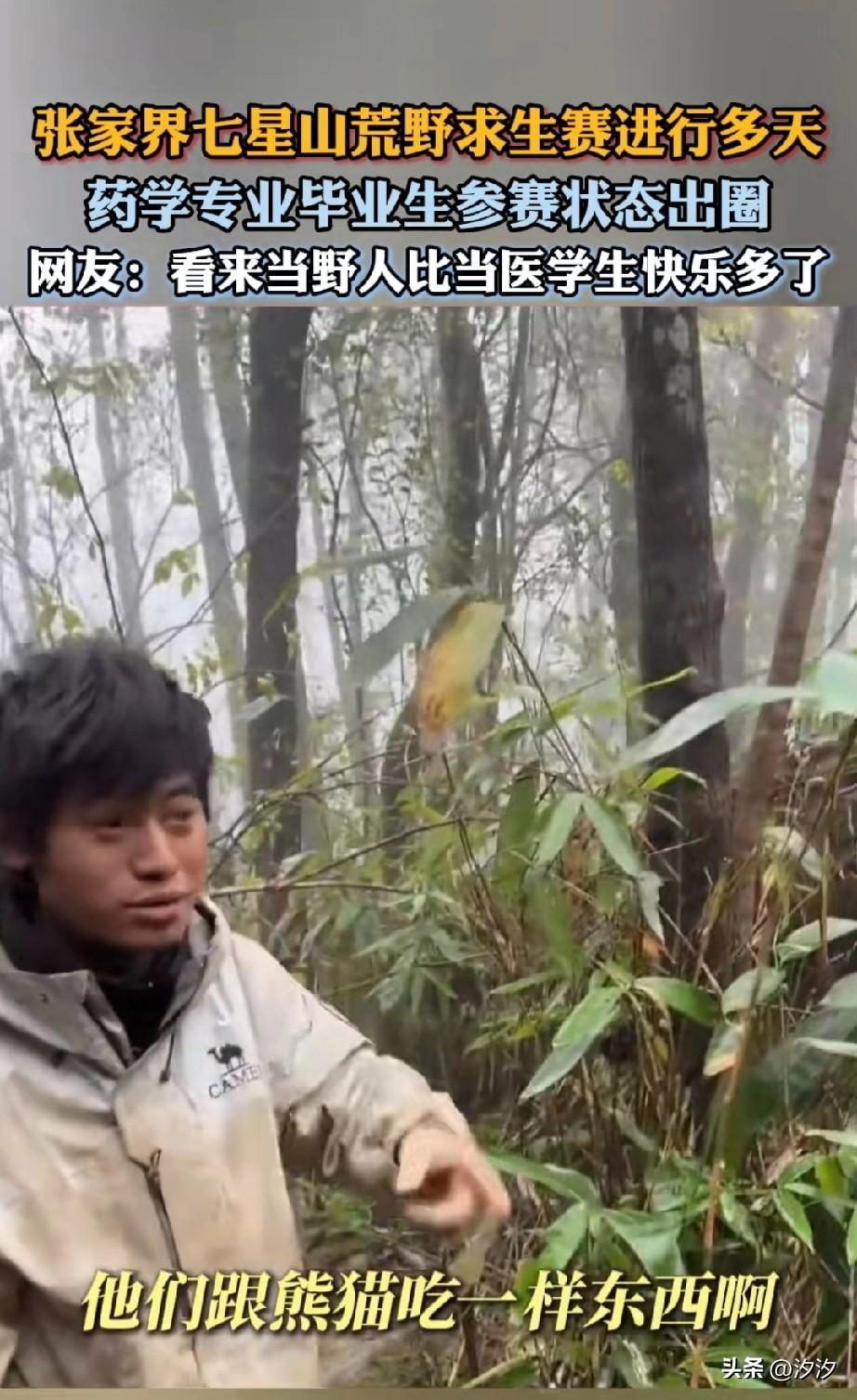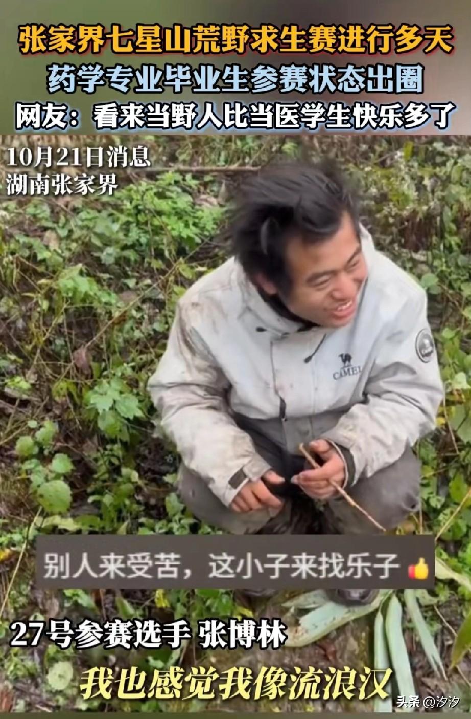 这个参加荒野求生专业的药学生火了, 他那魔性的笑声太出圈了, 尤其是他那往上长的头发, 足以说明他吃的太好了, 明明说好的荒野求生艰苦生活呢, 这算什么,野外豪华自助吗? 这个野果挺好吃, 那个竹叶青也不错, 野生菌菇简单煮煮就是美味, 看他吃的膘肥体壮的, 连多年的失眠都治好了, 别人都是愁的没啥吃, 他倒是一点也不愁, 在他眼里这张家界七星山简直就是宝藏,每天吃了睡,睡了吃的, 无忧无虑的简直赛神仙, 别人艰苦求生, 他倒好这度假来了, 工作人员都羡慕他了, 还猜他是不是四川来的, 他惊呼你们怎么知道? 工作人员表示你和熊猫一样吃竹子, 还真让工作人员猜对了, 小伙子要是贝爷来了也得服, 大家觉得27号选手张博林最后会赢吗? 每人推荐一个旅行目的地 张家界 荒野野求生 西部荒野求生 迷路求生 治愈系荒野