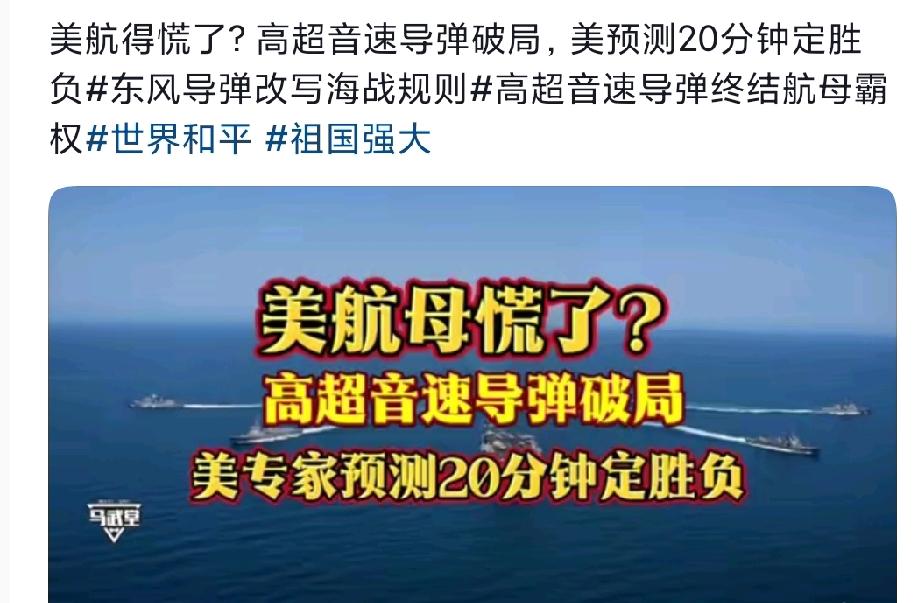 左边是美国航母群,右边是中国东风导弹,20分钟后结局惊人 美防长震惊:中国高超音速导弹20分钟能击沉10艘航母!东风快递以5马赫变轨突防,宙斯盾系统完全失效。但中国始终秉持防御原则,靠自主研发打破技术封锁——真理永远在射程之内,和平发展才是大国风范! 东风快递5马赫突防!20分钟干掉10艘航母?美防长这话真让人目瞪口呆 最近老美家的防长突然高调宣称:咱们的高超音速导弹太厉害了,短短20分钟就能让10艘航母变成废铜烂铁!这话听着怎么这么熟悉?不就是沿用当年渲染苏联导弹威胁的老套路嘛 其实我们的东风快递能够以5马赫速度进行变轨飞行,宙斯盾系统根本没法拦截。最关键的是全部技术自主创新,从耐高温复合材料到超燃冲压发动机,清一色都是自主研发。福建舰的电磁弹射,J-35的隐身性能,哪个不是实打实的硬核科技? 但咱们早就明确表态:发展武器装备纯粹为了自卫,从不搞霸权主义那一套。国防部多次强调和平发展理念,反倒是某些国家整天疑神疑鬼,自家激光武器研发跟不上进度就怪别人技术太先进 现在高超音速武器彻底改变了战场规则,各国海军都得重新规划部署。不过说实在的,真正的大国担当不应该是到处部署航母耀武扬威,而是要像一带一路倡议这样推动合作共赢 技术进步到底是为了维护和平还是制造紧张局势?朋友们不妨想想,怎样才能让科技成果真正造福全人类呢?
