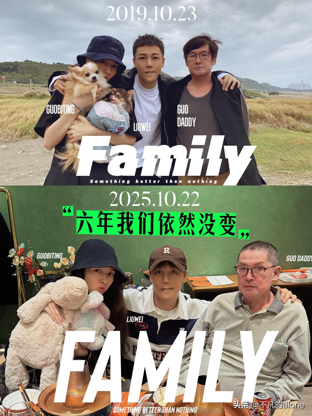 10月23日,刘维发文说:“六年依旧爱彼此,爱郭爸爸,爱碧婷。六年前我们认识,六年后大家依然有爱。” 刘维晒出了和郭碧婷、郭碧婷爸爸在新加坡的聚餐合照,1张是2019年拍的,1张是2025年拍的。 刘维和郭碧婷相识于综艺《最美的时光》,6年过去了,两人都发生了太多变化。刘维的爸爸妈妈不在了,郭碧婷完成了人生大事。 近日,因为向太爆料郭碧婷爸爸身患重病,郭碧婷爸爸不得不发文说明自己目前的身体状况。 郭碧婷其实很低调,要不是向太说出来,网友们肯定不知道她爸爸的情况,也不会引发一场舆论风波。 刘维和郭碧婷都是孝顺的孩子,默默扛起家庭重担,希望两人友谊长存,也祝郭碧婷爸爸尽快好起来。