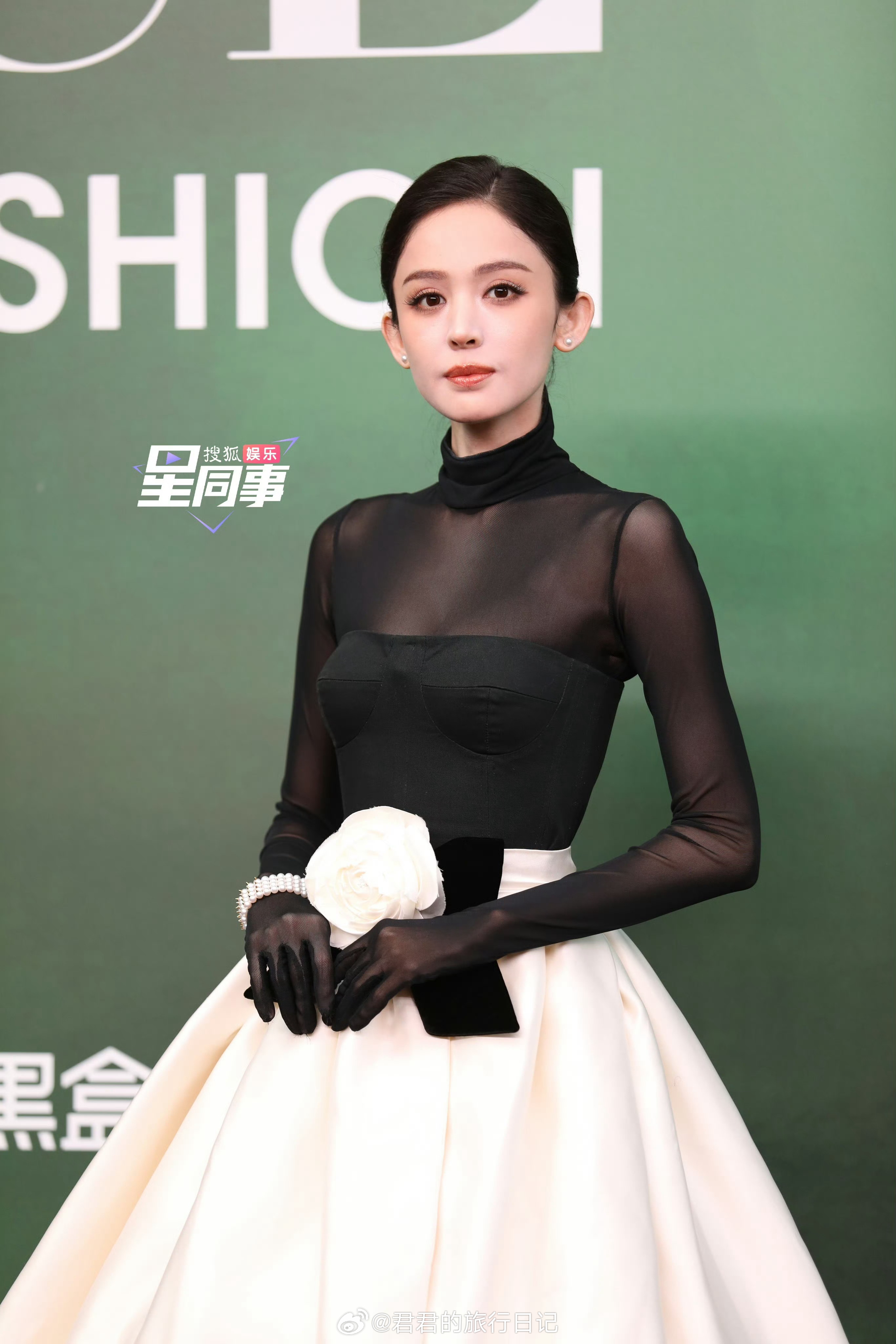 VOGUE盛典红毯上,杨幂开场、刘亦菲压轴。大合照环节,两位85花站在杂志主编两