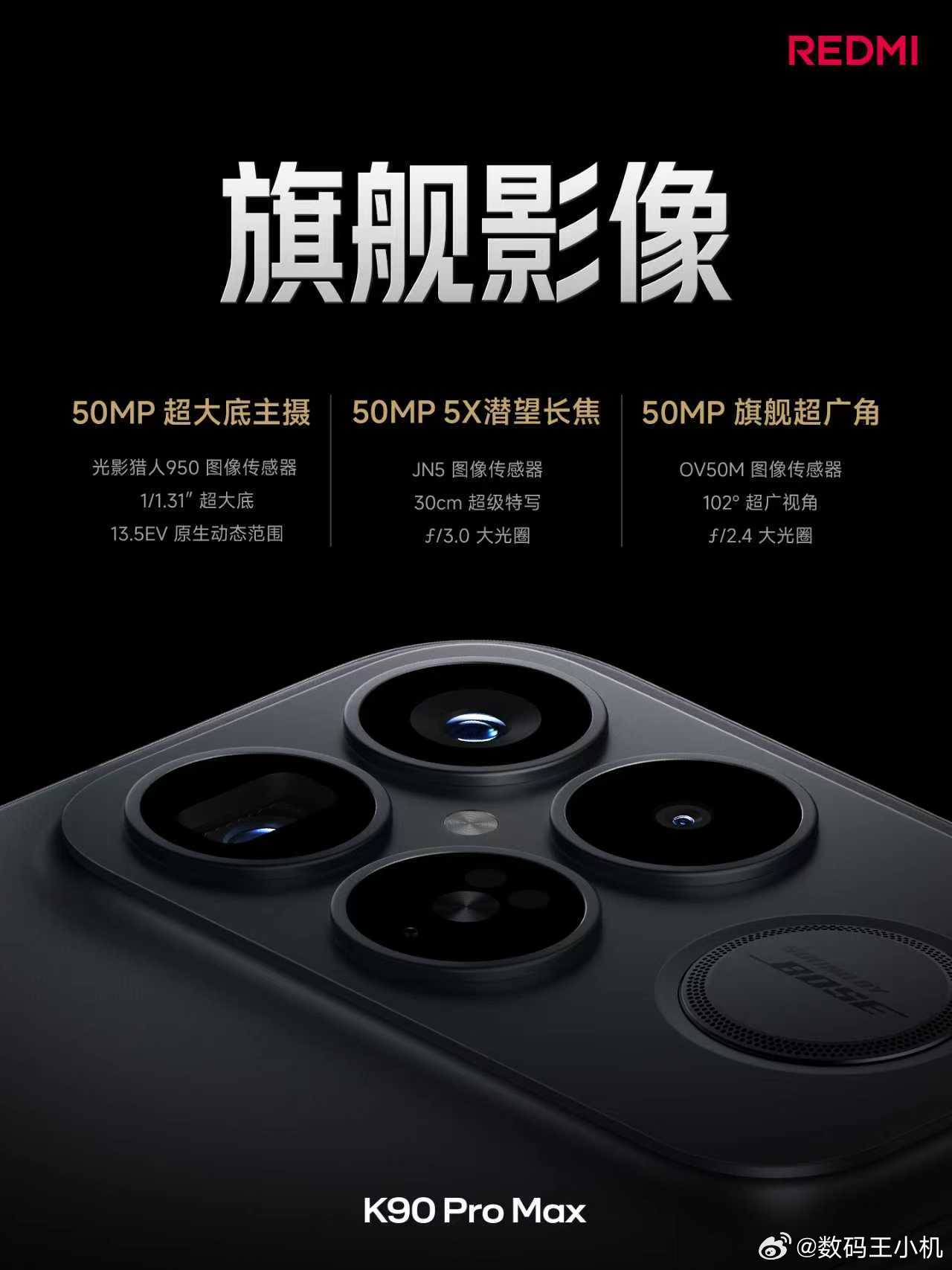 不得不说,这次REDMI K90 Pro Max以解决用户痛点为核心,搭载旗舰双芯处理器,搭配7560mAh电池搭配100W有线及50W无线组合,续航无忧;超级显示屏也用上了,还有小米青山护眼3.0,呵护用眼健康,影像再升级,首次搭载5X潜望长焦,K系列史上最强影像系统,即使放大20X拍摄也依然清晰出圈,最后还有联名Bose调教的低音炮扬声器,连陈奕迅都赞不绝口。