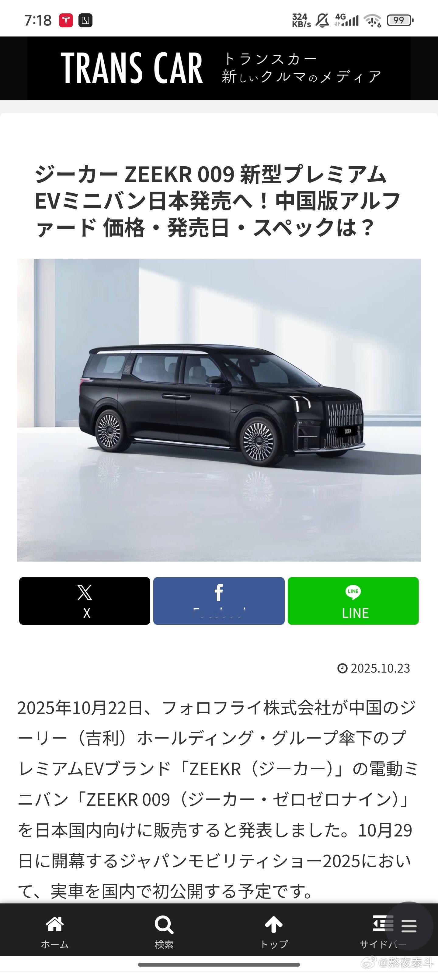 极氪即将登陆日本,国产豪华MPV极氪009预计会利用销售中国电动汽车Forofly的销售网络。