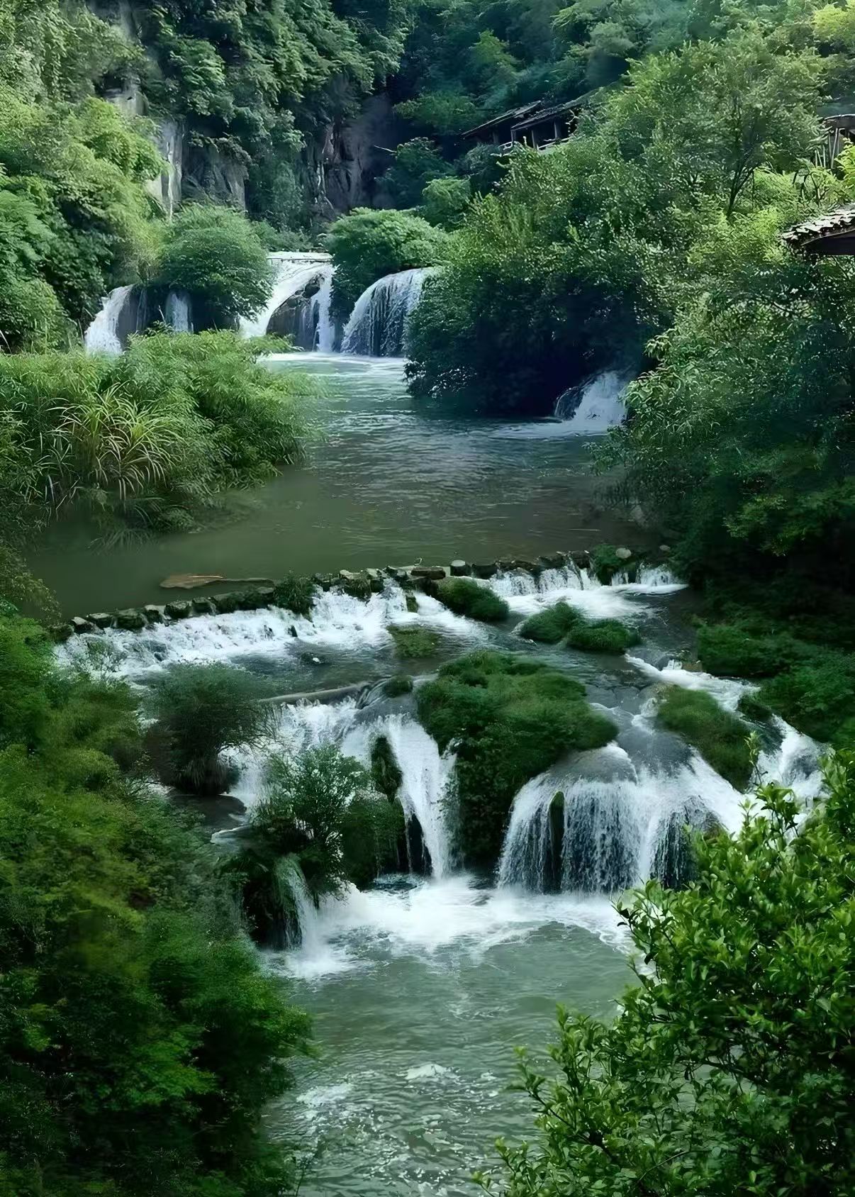 ✅天生桥:天然石桥与瀑布相连,是网红拍照点,瀑布水流湍急,气势磅礴。