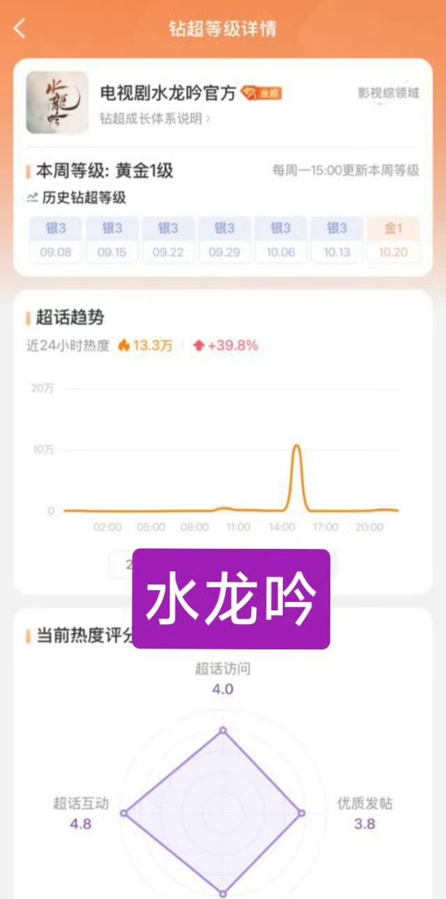 来看看《天地剑心》《水龙吟》《暗河传》的超话热度走势![吃瓜][吃瓜][吃瓜]水龙吟