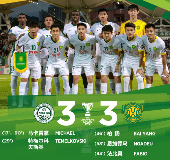在2025-26亚冠二级联赛小组赛第3轮中,北京国安客场3-3战平大埔。
