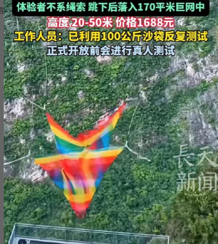 就是不系绳索,直接往下跳,几十米的下方有一个大网可以兜住人。