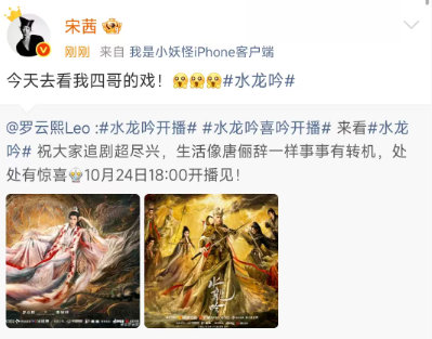 宋茜给罗云熙新剧打call宋茜叫罗云熙四哥 宋茜给罗云熙新剧打call!