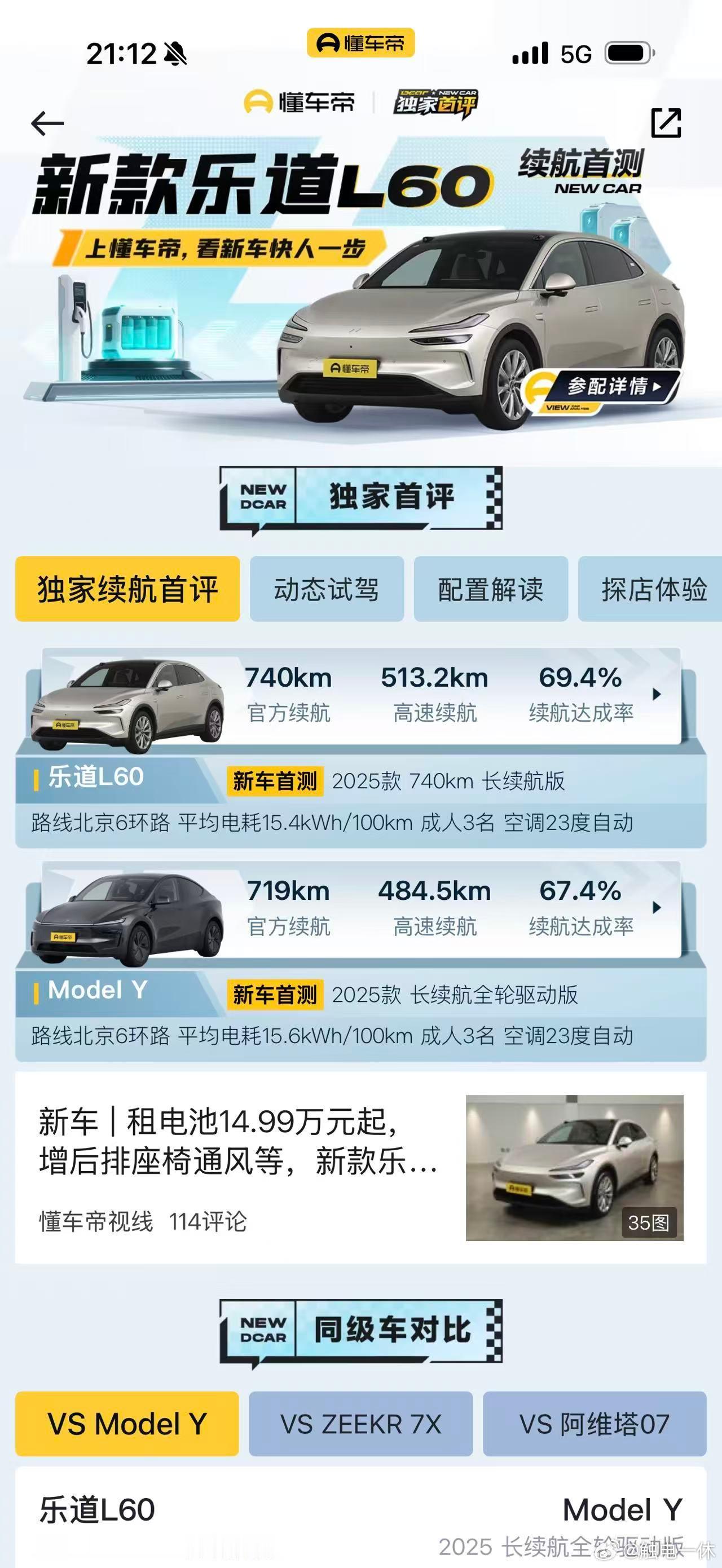 120时速下乐道L60跑出了513公里的续航,超过Y的484公里,15.4的百公里电耗也优于Y的15.6,这个成绩算是把特斯拉的能耗信仰打破了乐道l60model y