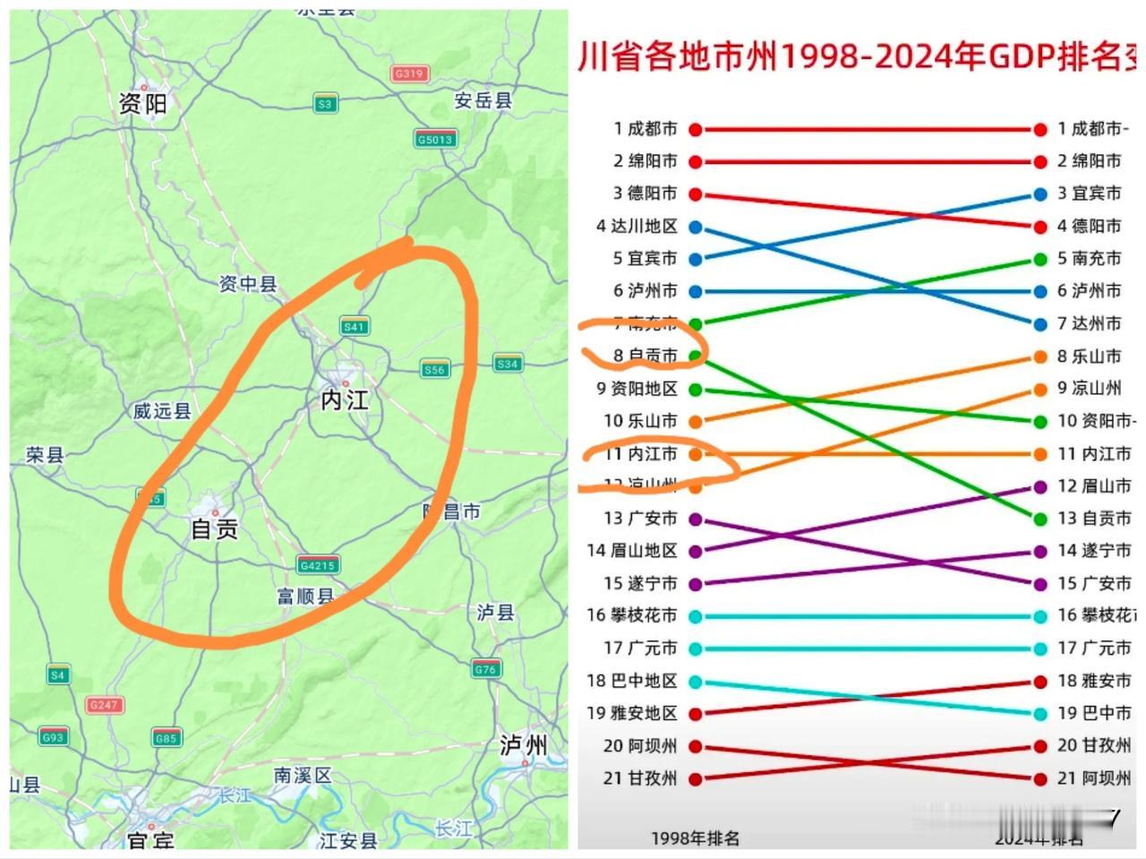 自贡市凭什么能耐一直占据着车牌川C的位置?自贡的GDP从1998年的第8名已经降到现在的第13名,应该是四川省内排名位次降的最多的一个城市。与其让它一直这样衰落下去,不如想想办法让它与周边的城市合并,而与内江合并是最好不过的方案了,名字就叫内贡市吧(扩大内需),或者叫江贡市也行,不建议叫内自市。