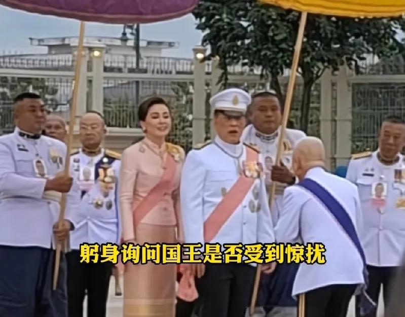 就在刚刚! 泰王参加活动队伍,竟遭行人冲撞 当时泰王玛哈与苏提达王后,带领一众官员参加拉玛五世的缅怀仪式,谁知快结束时,一男子突然从人群中冲出来跑向泰王,随后被赶来的护卫队押走。 泰王玛哈站在原地短暂平复心情后,并没有斥责护卫队失职,也没重罚冲撞之人,反而吩咐身旁的苏提达,去询问该男子是否有冤屈或难以解决的困难。 苏提达得了指令后,也是很快问完了缘由,该男子并没困难,只是见到泰王情绪激动,脑子一热就跑了上去,最终男子在苏提达的安抚下起身离去,而泰王也并未追究此事!