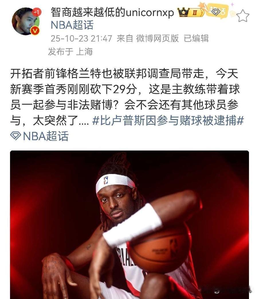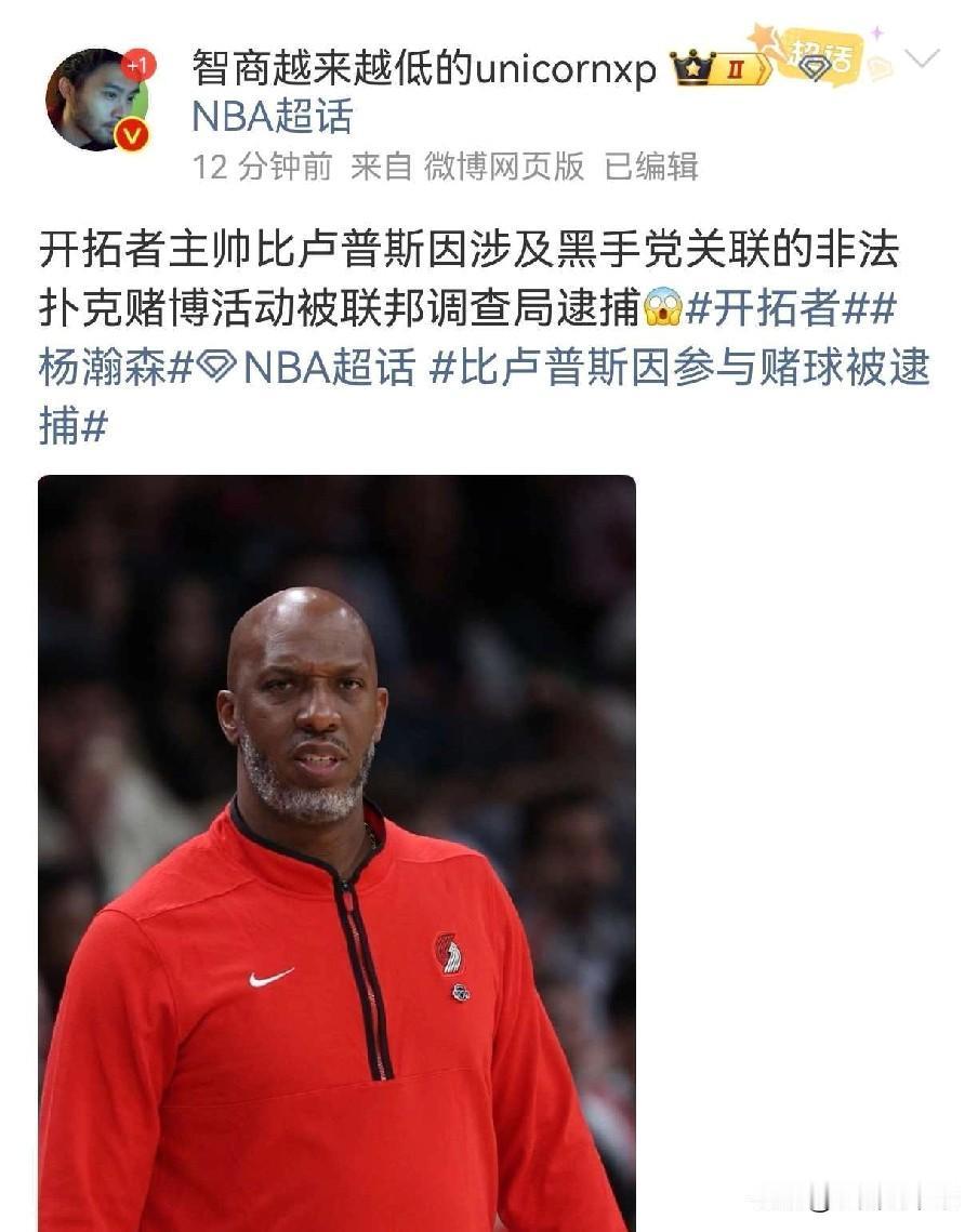 中国男篮的劫数!杨瀚森好不容易遇到一个好教练!竟然被带走了 中国男篮真的是流年不利,难道中国球员想打NBA真的那么难吗?姚明不到30岁因伤退役,易建联好不容易坐稳雄鹿队首发受伤了,后面丢首发,接着被交易,丁彦雨航如日中天的时候去美国打夏季联赛也受伤了,周琦、崔永熙都是没打几场就受伤了。 现在全国球迷的希望都放在杨瀚森身上,杨瀚森也确实得到了开拓者主教练比卢普斯的重点关照,对他的指导和使用也是很用心的,结果才打了一场比赛,据美国媒体报道,开拓者主教练比卢普斯和球员格兰特被联邦调查局带走,据悉是因为涉及赌球。 这对于杨瀚森来说绝对不是一件好事,毕竟比卢普斯带了杨瀚森几个月了,对杨瀚森的技术特点也比较熟悉了,知道如何去使用他,换个教练杨瀚森未必能够得到适当的支持,这一变故甚至会影响杨瀚森的发展前途。