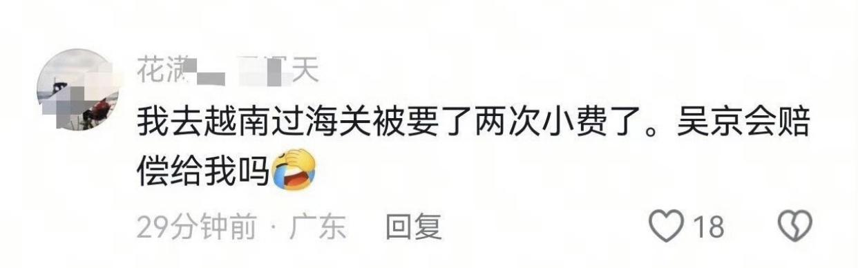 有位网友去越南,过越南海关时被要了两次小费,他发文问道,“吴京会赔偿给我吗?”,战狼无效啊!