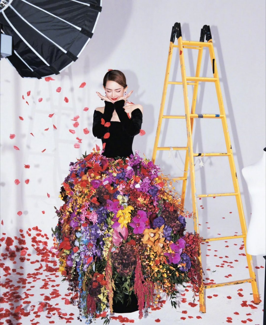 鲜花中走出来的美仙女戚薇!太惊艳了~气场全开!