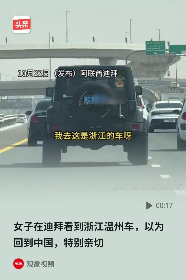 迪拜街头的一次偶遇,让思乡的女子热泪盈眶。生活在异国他乡十年,她在街上意外看到一辆挂着“温州”字样的车牌,激动地赶忙拦下车主,竟发现对方也是从温州远道而来的老乡。当车主讲述他的经历——开车两个月跨越近3万公里,只为在迪拜追逐梦想时,女子更是感慨万分。 这一场意外的相逢,让双方在异乡的孤单瞬间被暖意填满。诉说漂泊的点滴与人生的坚持,两人都眼角湿润,心中泛起强烈共鸣。网友评论道:“阳光之下,必有温州人的身影。”确实,温州人的拼搏胆识无处不在,他们用行动诠释了奋斗的意义。 愿这样的久别重逢,能成为彼此温暖的支撑,也祝福所有奋斗在异乡的每一个人,终有归乡时刻,回到最熟悉的地方