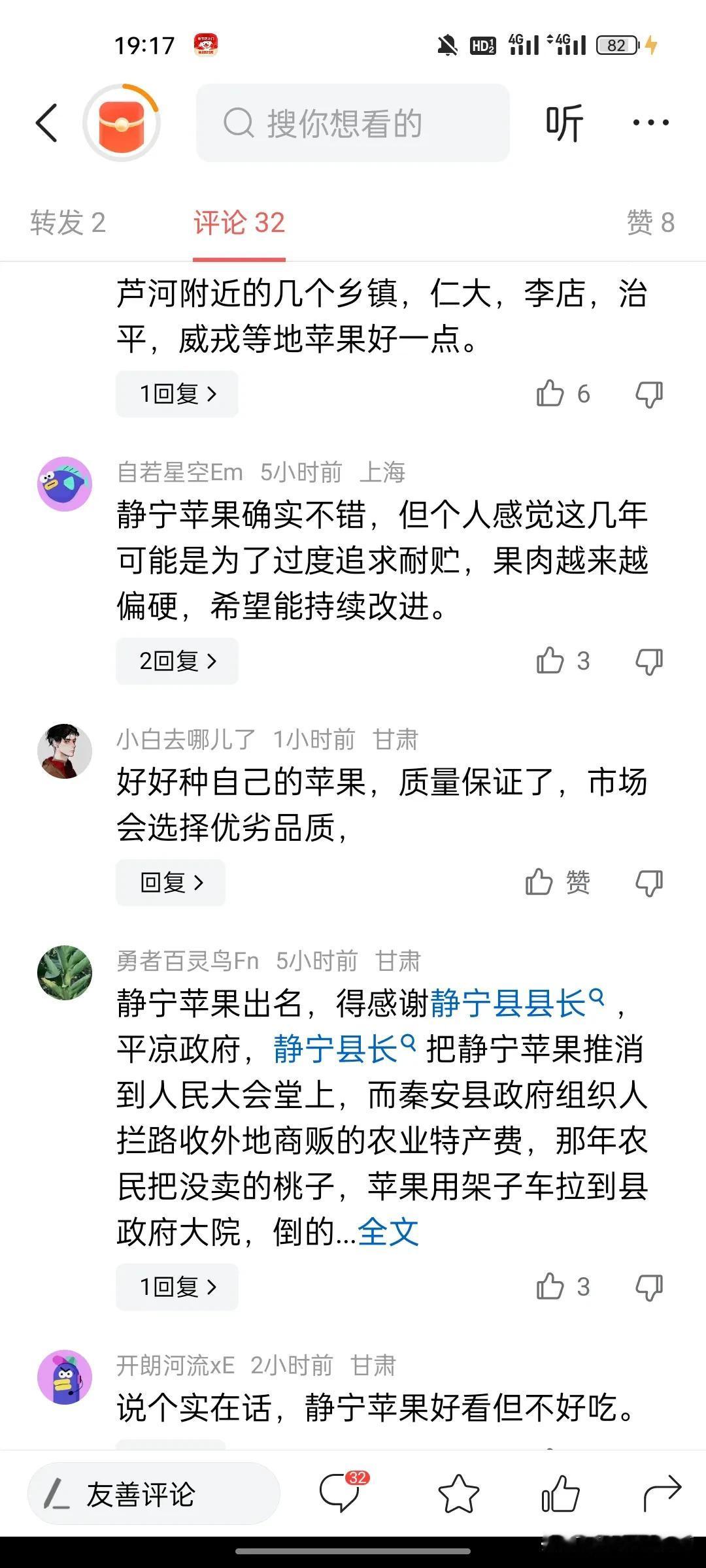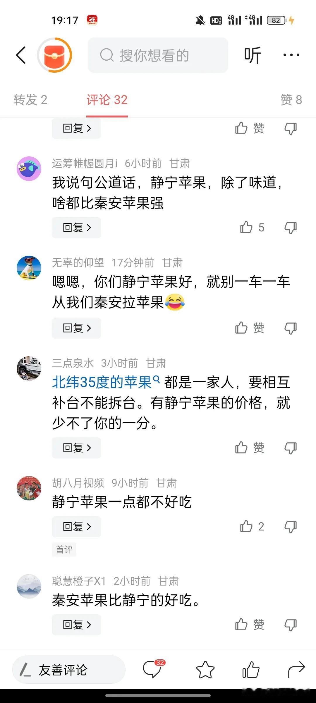 有关甘肃苹果王之争论网上炒的沸沸扬扬,静宁县果友说无论从产量,品质,口感各方面综合比较,静宁高山红富士是甘肃苹果王。 一,听静宁网友这样说,秦安县果友不干了,秦安县果友说静宁红富士都是从秦安县引进过去的,静宁红富士是只是秦安县红富士的弟弟,无论从产量,品质远远干不上秦安红富士,秦安红富士才是甘肃果王。 二,甘谷花牛果友也说话了,咋了,我们甘谷花牛苹果出口海内外,驰名中外,我们才是妥妥的甘肃苹果果王。 其实按我说,富士苹果和花牛苹果比产量还行,要是比口感,品质,根本没法比,静宁和秦安红富士,口感脆甜,水分足,适合长时间储存,但是果皮比较硬,对牙齿不好的老年人也不太友好。 甘谷花牛苹果口感沙甜,糖分足,营养价值高,但是比较绵软,不好储存,适合老人吃。 其实红富士和花牛基本没有可比性,就像红糖和白糖做比较,到底谁是甘肃苹果果王,仁者见仁智者见智。