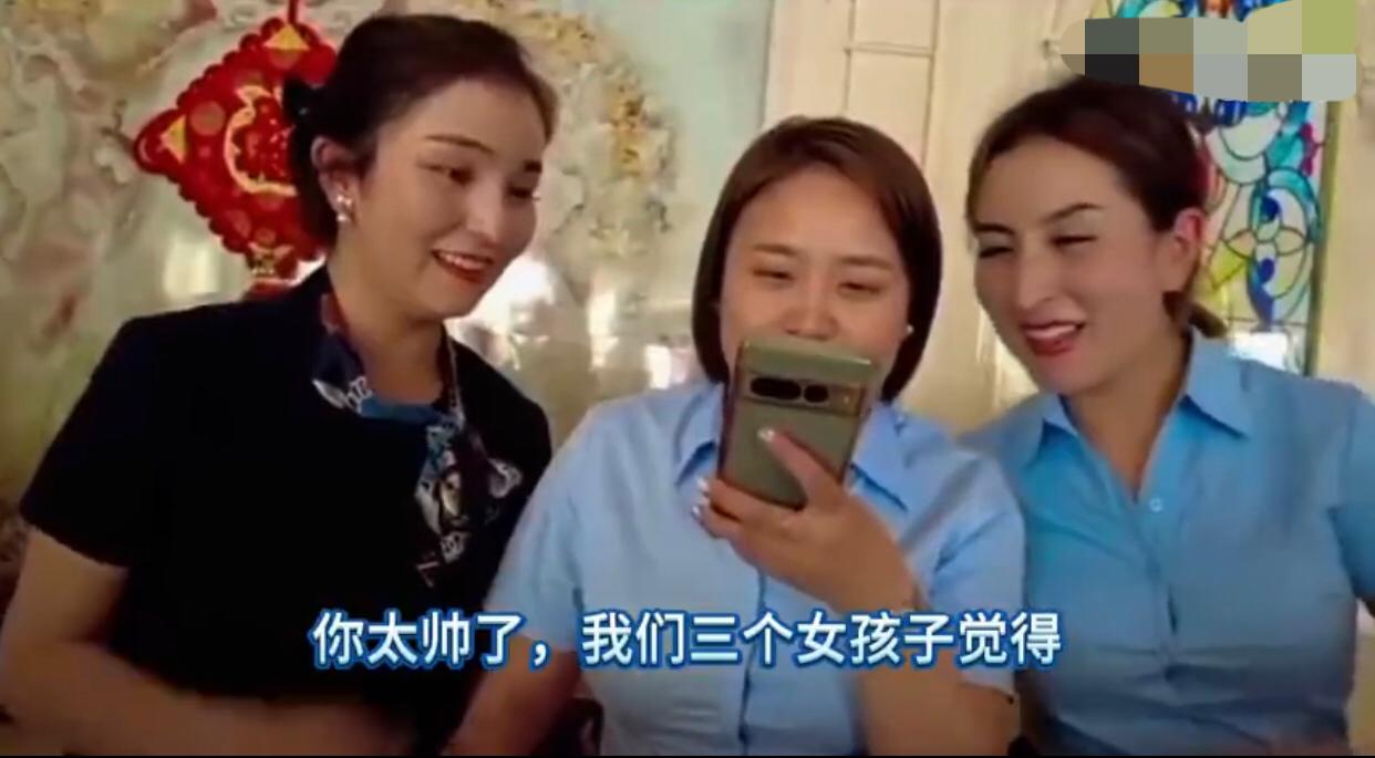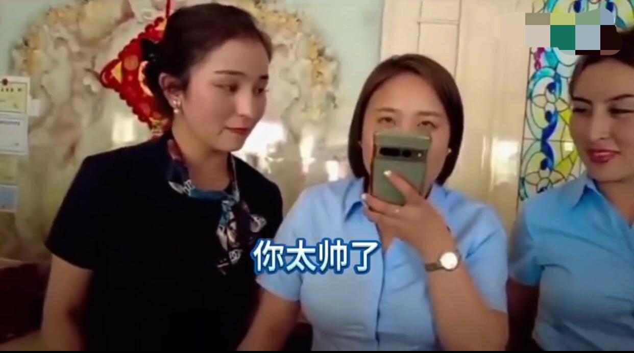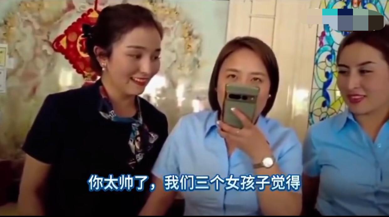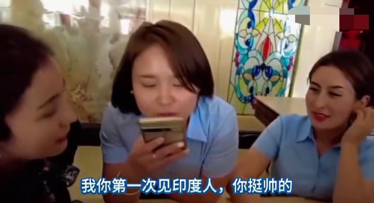 一位印度男生来中国旅游,在住酒店时,酒店前台的3名中国女生跟他搭讪,说他长得很帅,问他有老婆了没有,印度人说没有,并直接问道,你们能嫁给我吗?引得这3名中国女生哈哈大笑。 中国女生:“翻译,说一句,你太帅了,我们三个女孩觉得。” 印度男生:“谢谢、谢谢!” 中国女生:“哈哈哈哈哈…,谢谢的意思。” 中国女生:“翻译,你问一下是一个人来的吗?‘你是到新疆来旅游的吗?‘” 印度男生:“说的。” 中国女生:“翻译,问一下他有没有老婆?‘你结婚了没有?’” 印度男生:“没有。” 中国女生:“哈哈哈哈哈…。” 印度男生:“你想和我结婚吗?” 中国女生:“翻译,嫁给你?哈哈哈……我第一次见印度人,你挺帅的。” 印度男生大笑起来。
