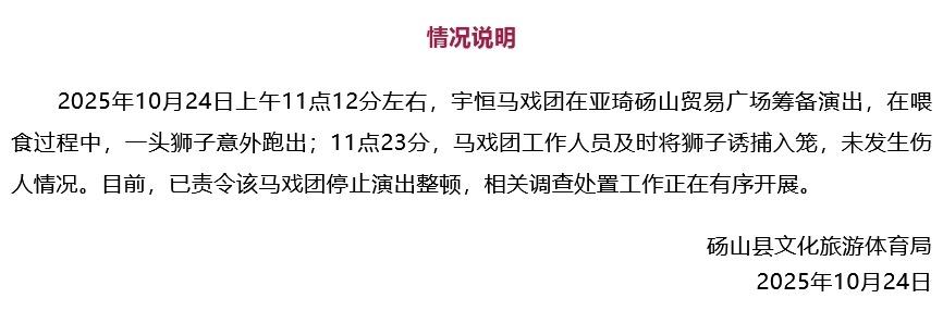 砀山街头11分钟,狮子出逃背后的警示 10月24日上午,安徽砀山街头上演惊险一幕