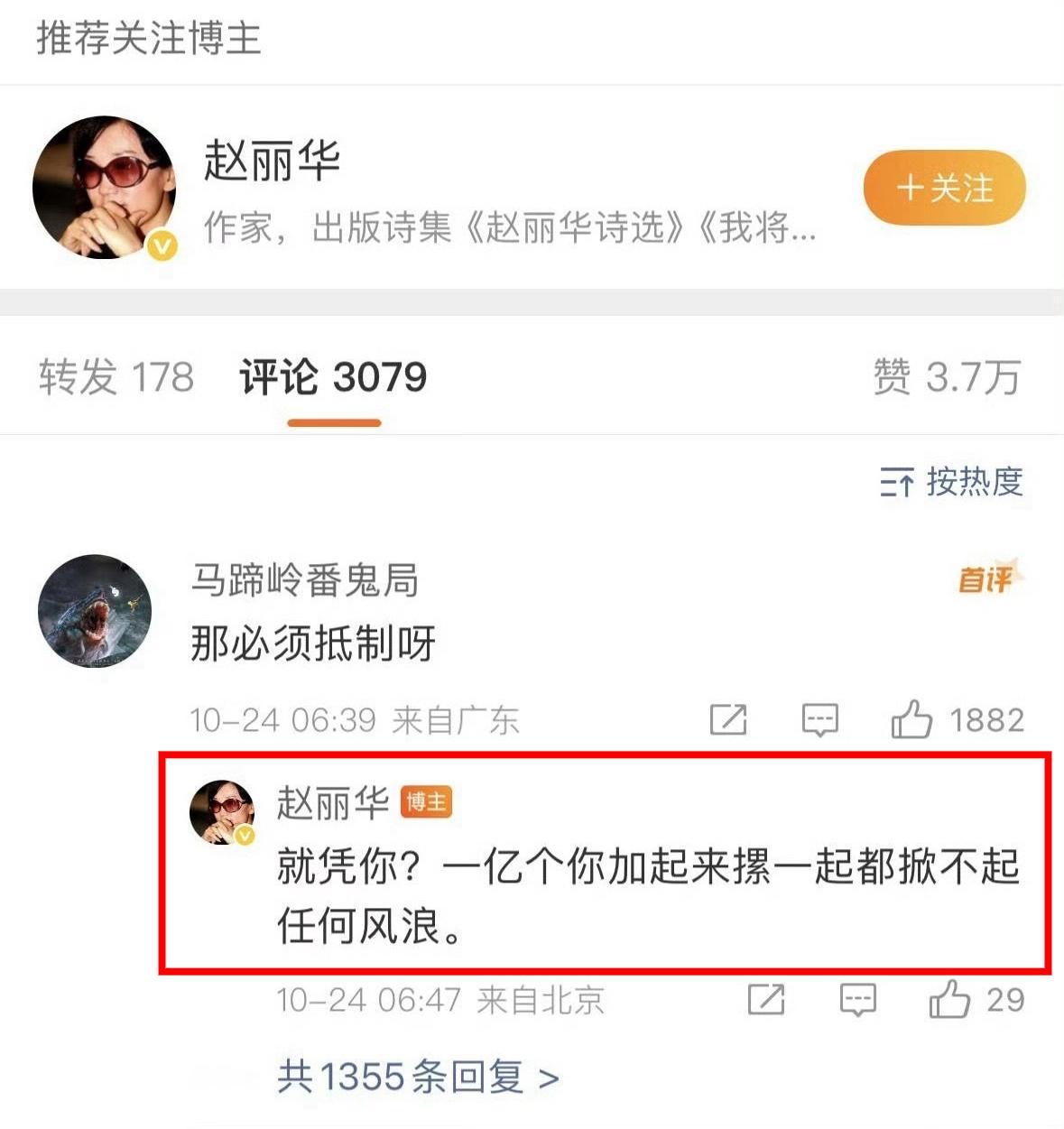 支持方励的人来报到了, 还赶着上热搜了, 据说是方励的朋友, 在微博出面支持他的新电影的? 也不知道这位“赵丽华”知道些什么? 不知道些什么? 一上来就杠, 看着她这说话的语气, 应该是“比较”容易爆肝的人![黑线]
