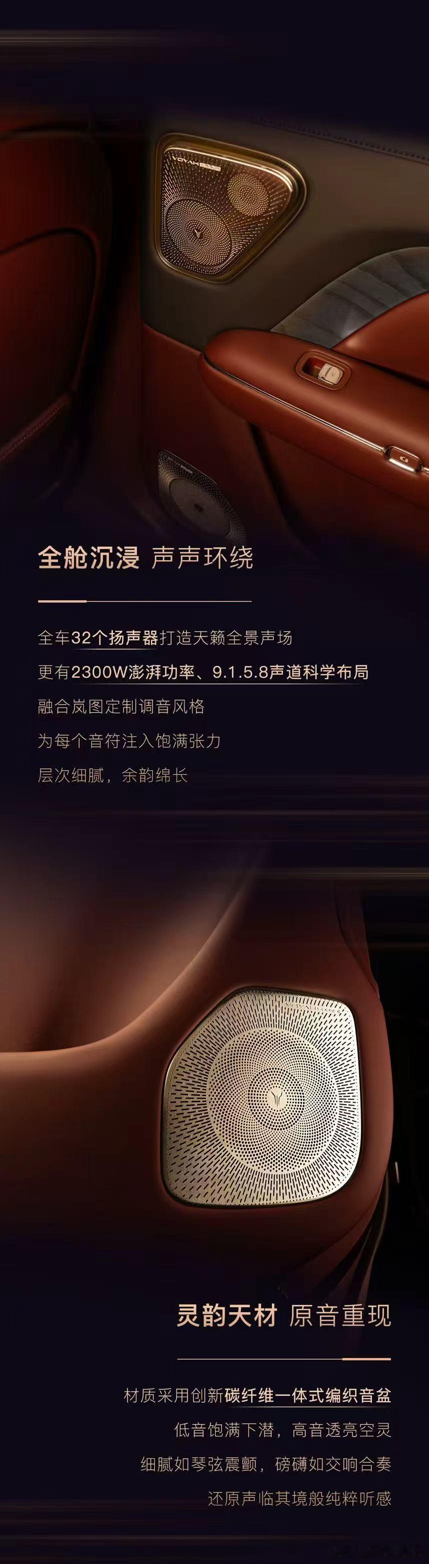 作为一名长期研究音响配置的发烧友,我对设备的要求一向很高。在见识过众多车载音响系统后,即将于11月上市的岚图泰山所搭载的“至臻天籁”音响系统让我眼前一亮。这套系统配备了32个扬声器,并拥有2300W的强大输出功率,诚意满满。更令人兴奋的是,它采用了碳纤维一体编织音盆,能够完美呈现低音深沉、高音清澈的效果。这样的音响装置无疑会让驾驶体验变得更加美妙!