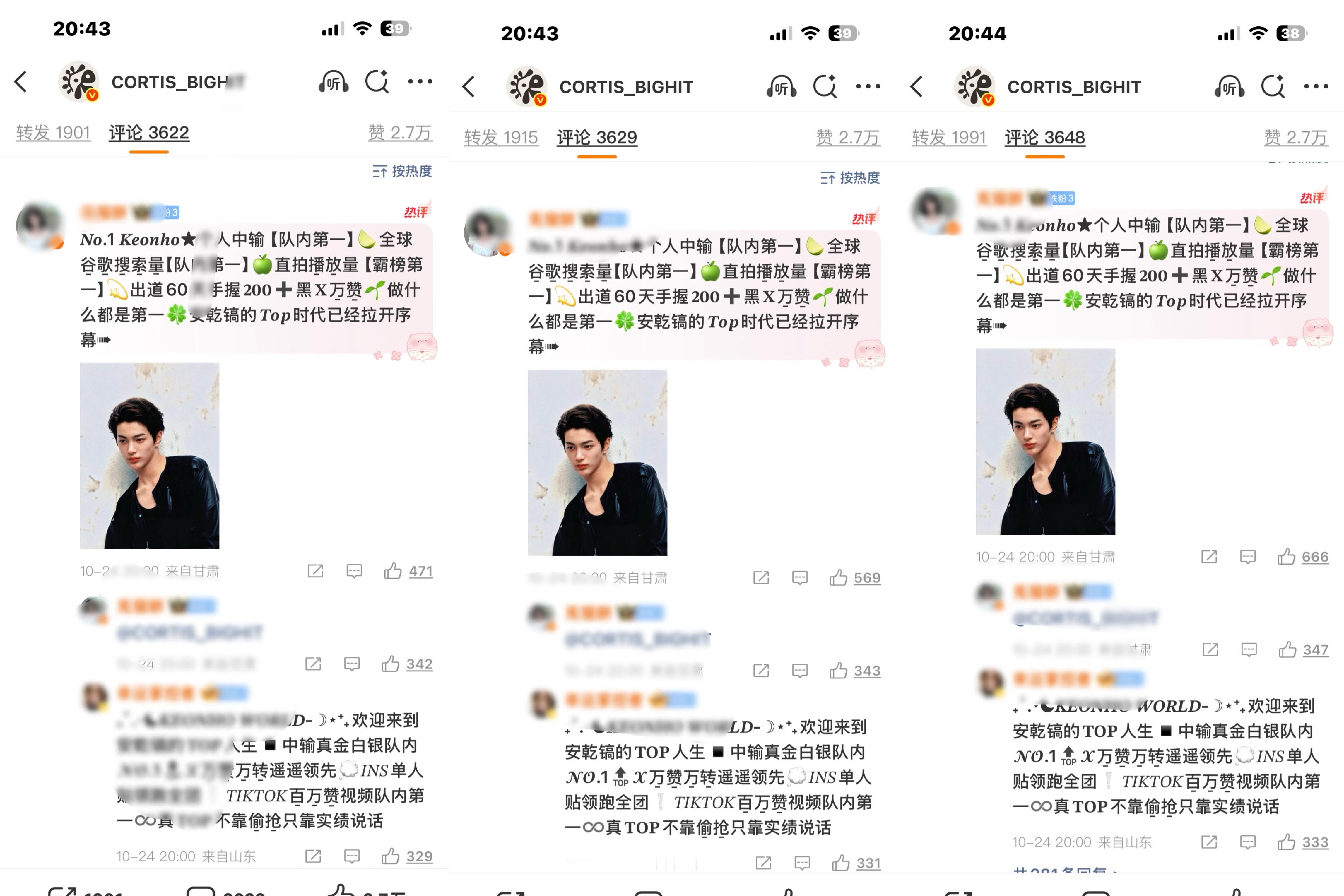如何看待 Cortis 官博发大水 短短一分钟 TOP 安乾镐内楼赞数不变得情况下外楼一直在涨