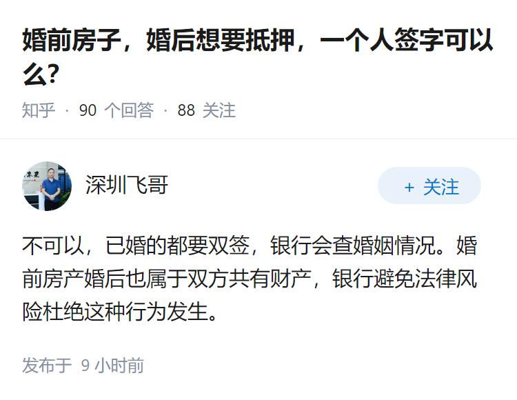 婚前房子,婚后想要抵押,一个人签字可以么?