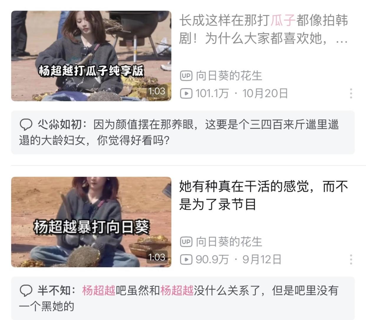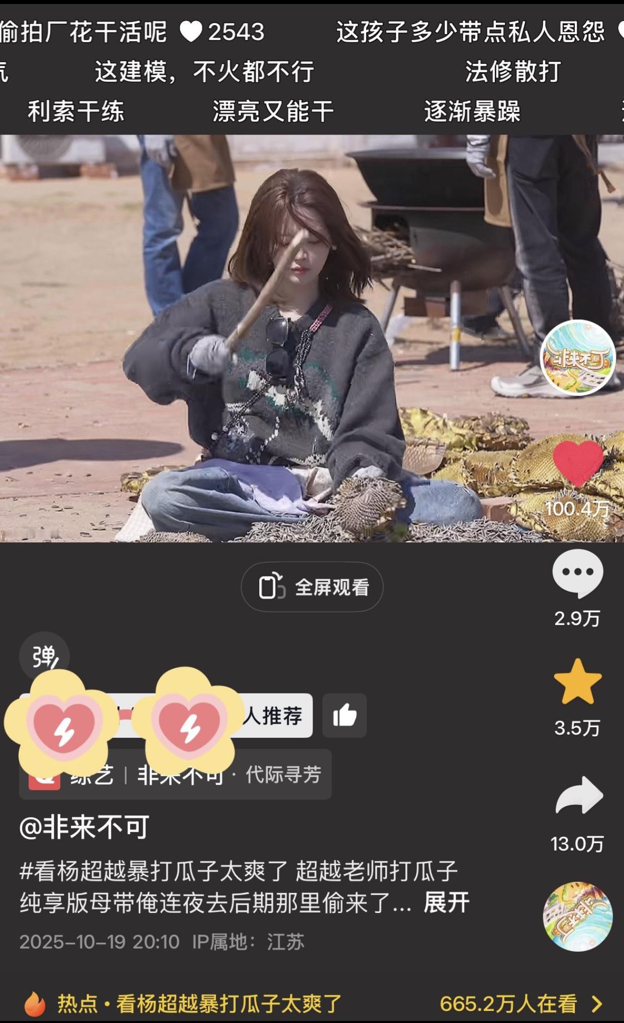 演员明星杨超越, 在综艺节目中忘我工作、暴打瓜子的人。