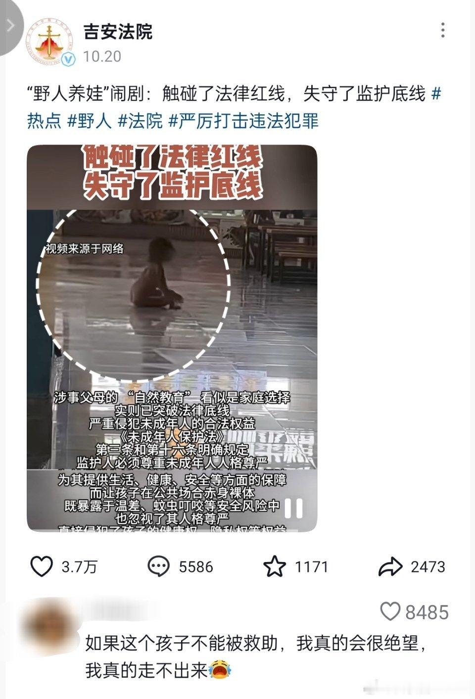🔻“野人养娃”闹剧:触碰了法律红线,失守了监护底线。野人小孩事件最新进展