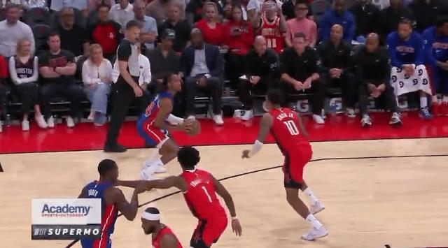火药味十足!火箭就没怕过这种硬战! 本来想着,有阿门、奥萨尔的关系在,火箭、活塞的关系应该还行,结果这场比赛的激烈程度,让人意外! 先是奥萨尔、小贾因为抢球,推搡在一块。所幸裁判和队员及时拉开,经过回看,裁判给了双方技术犯规。不过双方也挺友好,后面小贾和奥萨尔碰一块,奥萨尔还轻轻拍小贾。 但是更激烈的,居然是阿门、杜伦! 杜伦要强起上篮,阿门犯规摁下来。杜伦立马推阿门一把,但阿门没理他,只是轻轻的走开,获得一次技术罚球。但这只是开始! 在活塞的一次进攻中,阿门、杜伦纠缠在一块,杜伦直接一个肘击,直接干阿门的面门!阿门躺地板好久才起身。裁判回看直接将杜伦罚出场! 不过通过这两回合能看出,阿门成熟了很多。以前这种场面,估计直接火爆回应了! 这一场的碰撞多、犯规多,连教练都忙的有点迷糊了。乌度卡这居然安排了6个人同时在场!