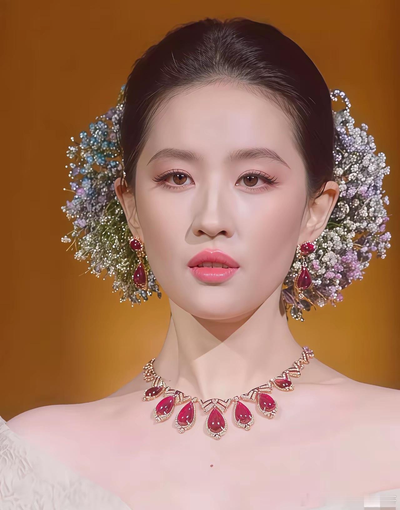 刘亦菲头上10块钱的满天星都变成了高定珠宝