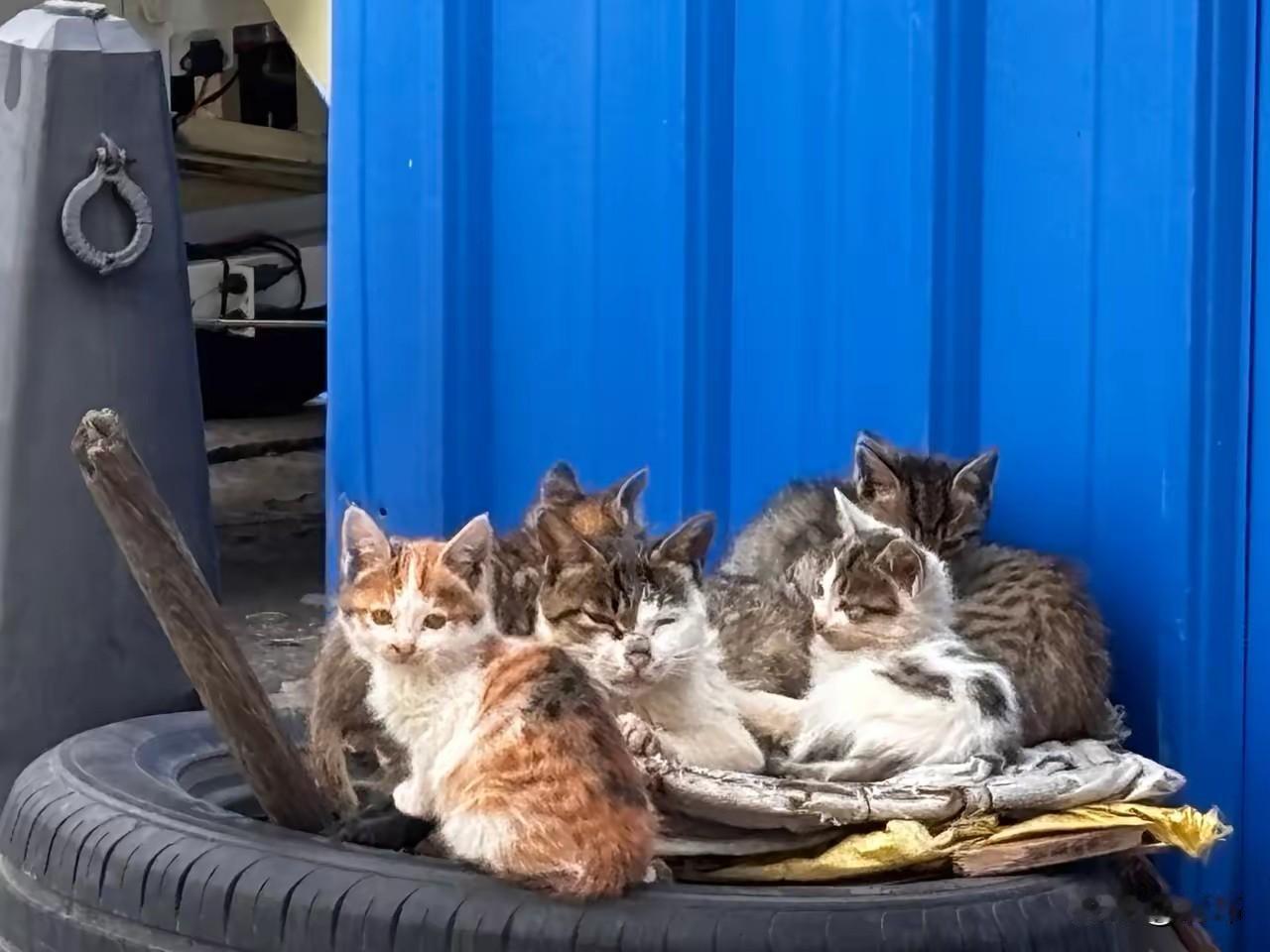 这天一位小姐姐去上班的时候,路过一个停车场的时候,看到了一群流浪小猫蹲在一个旧轮胎上,它们估计是饿了,一只喵喵喵的叫。 那甜甜的叫声瞬间吸引了她,于是就拿出食物投喂它们,结果它们居然开始跟着她了,她想收养它们,可实在太多了,有些养不过来,她想到了一个办法,她几个邻居都有孩子,一定会想要养的,于是就打电话叫来他们一起收养了它们。
