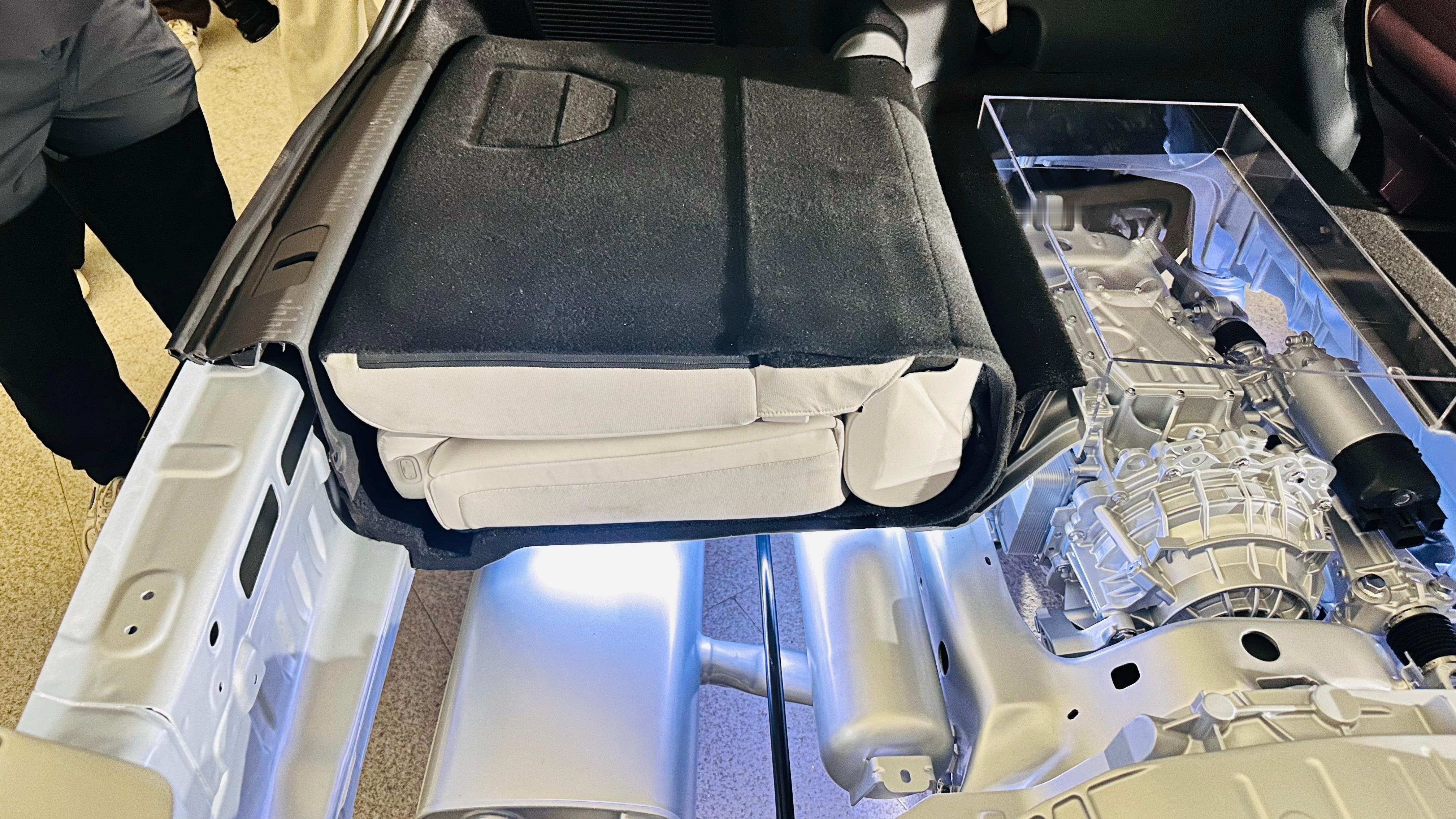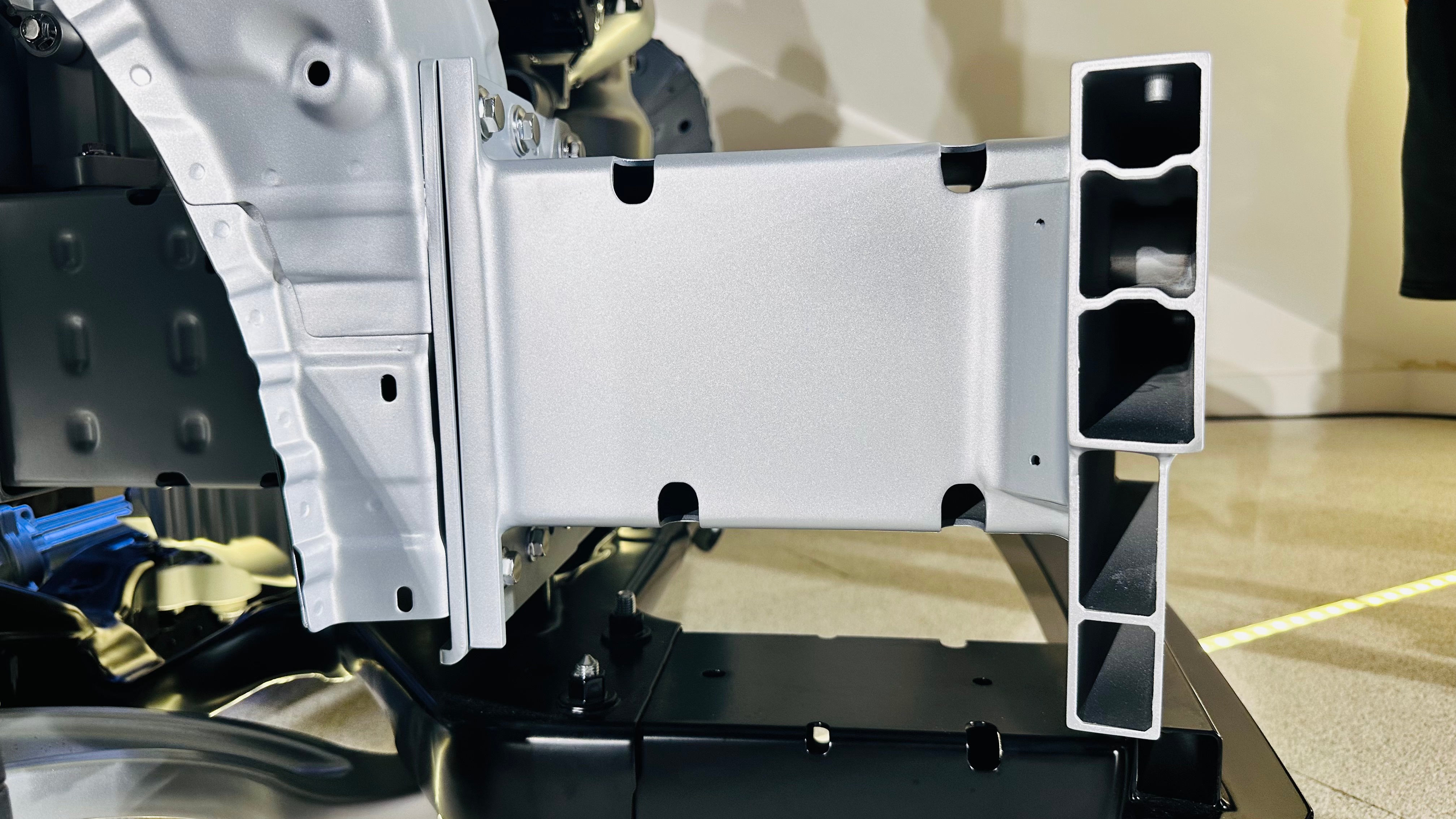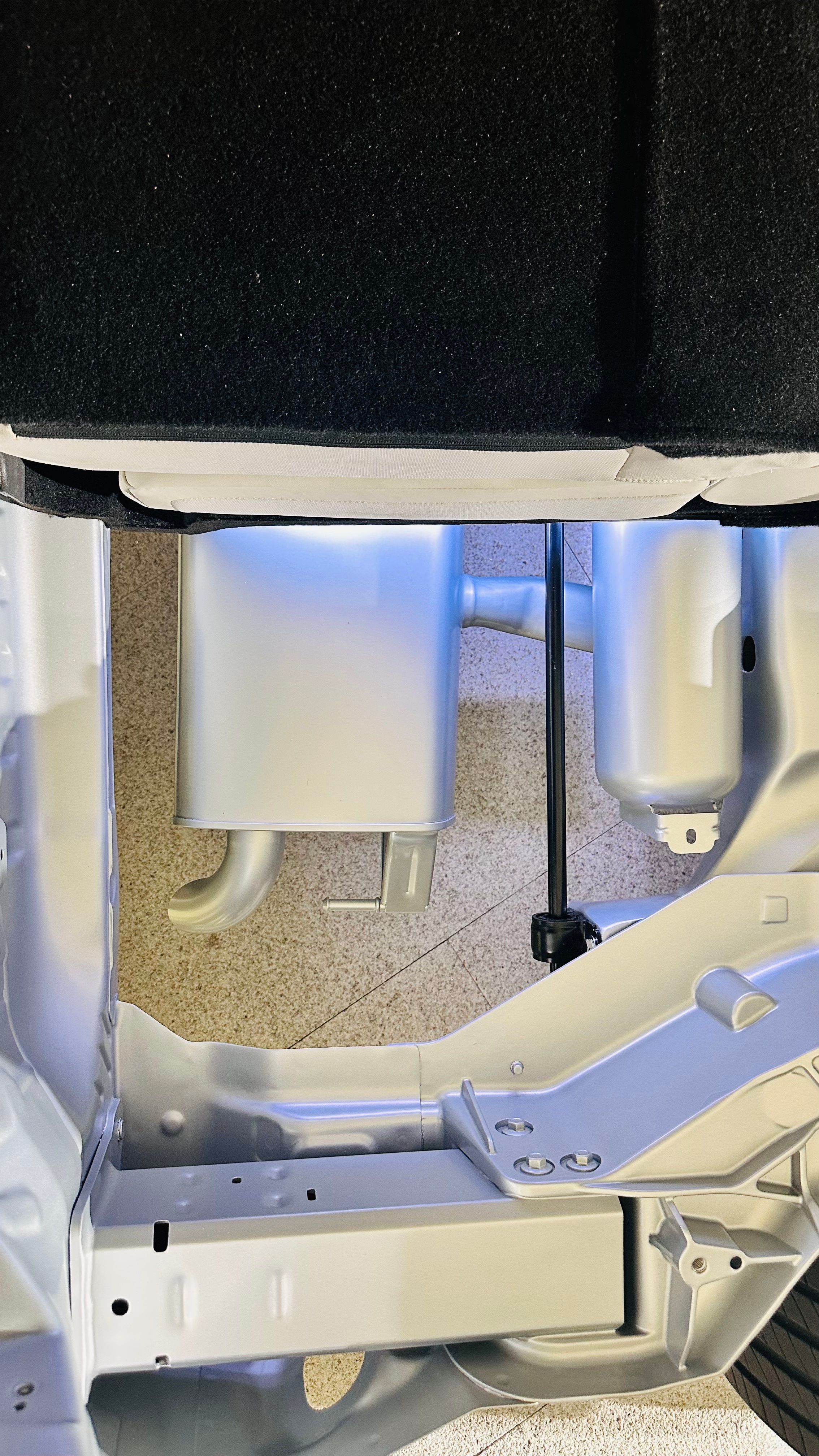 3,后置电驱一定会入侵后车身空间。使用压铸车身抢出了12mm Z 向空间,保证了后排头部空间。