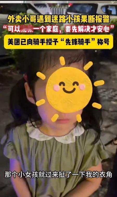 外卖小哥遇到丢失小女孩,拯救了一个家庭! 刚才刷到个暖新闻:广州某团骑手高嘉浩送