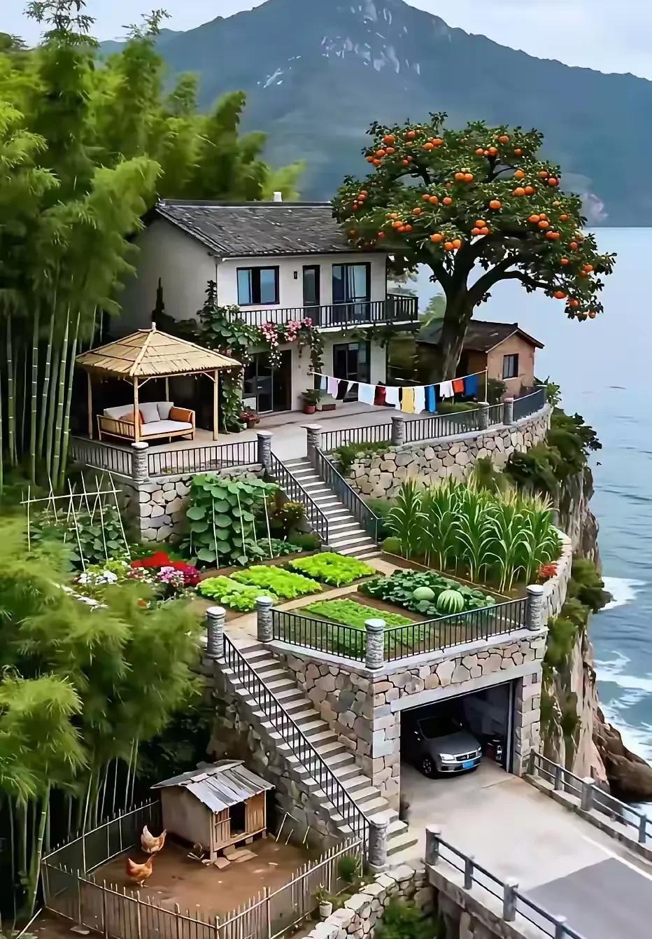 但我感觉位置不太宽敞,现在乡村小别墅哪家门前院子不宽敞,有的建成小庄园,果园菜地、花园亭台、假山流水啥都有