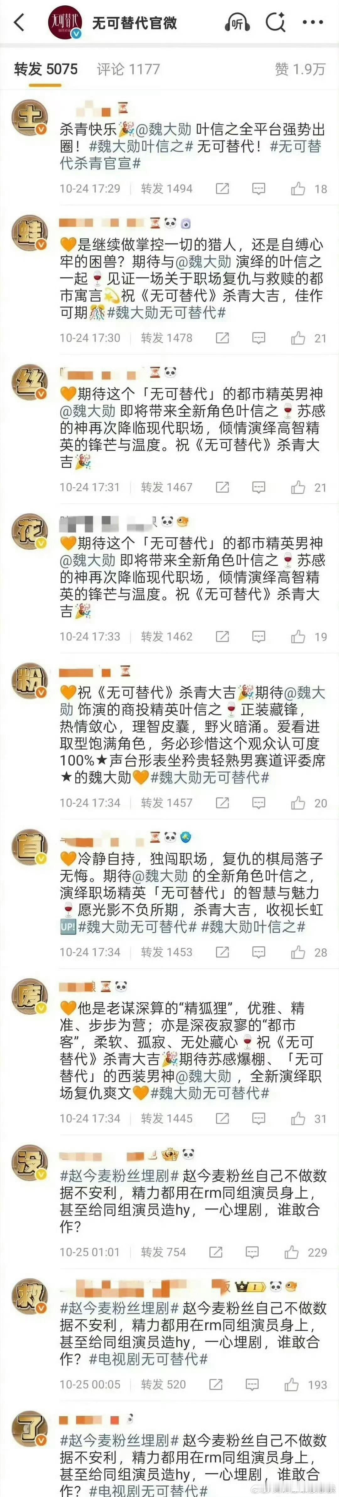 这又咋啦?魏大勋粉丝在官博转发区给赵今麦排字