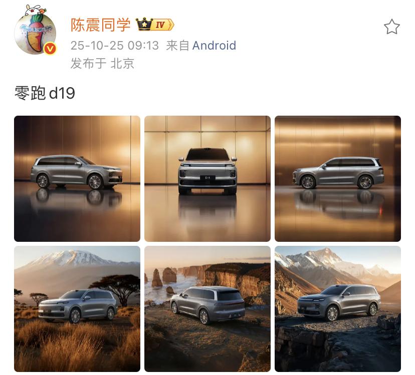 陈震:零跑D19! 其实离超过200米每家的9系区别就不大了,除了极氪9X,真别说现在的车型长得是真的好看,零跑真是属于闷声发大财的状态。 大家觉得这款车上市能不能卖爆小编觉得卖的不知道,反正一定很好卖是真的。 现在的策略挺成功的,“半价特斯拉”开始推出的车型都是又叫好又叫座。