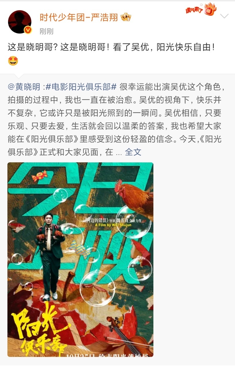 娱乐[超话]严浩翔这是晓明哥严浩翔转发黄晓明严浩翔转发黄晓明,来支持哥哥啦