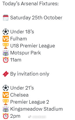 阿森纳U21vs切尔西U21 金秋观赛季 阿森纳著名教授