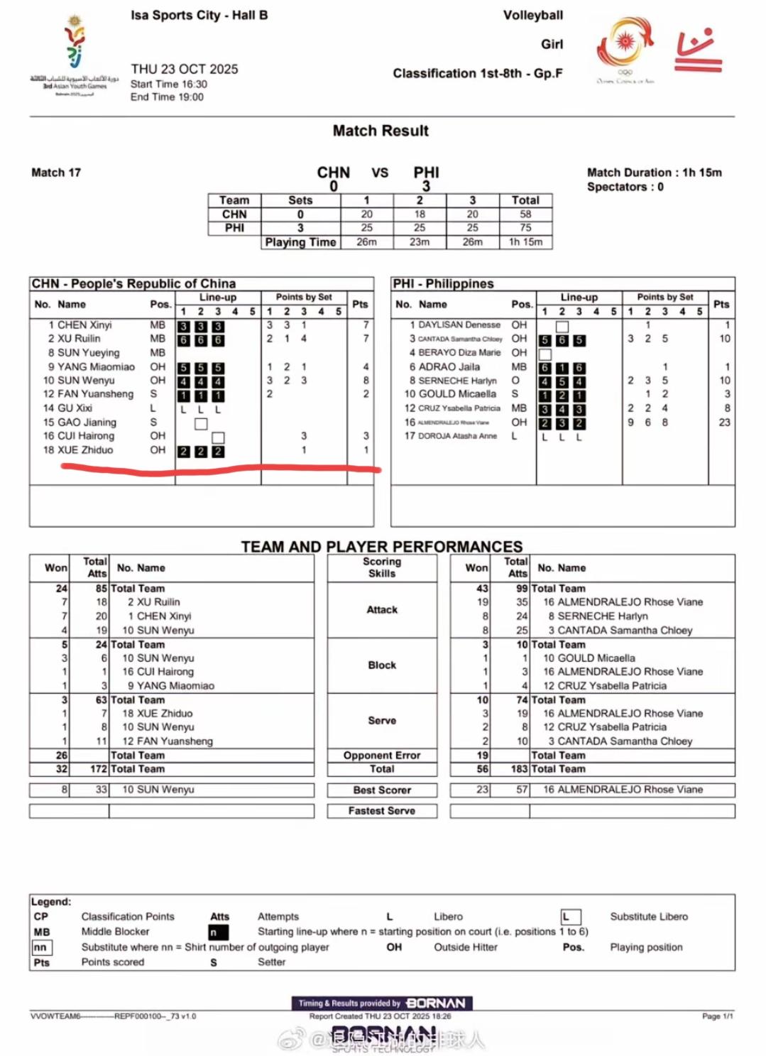 亚青会中国女排0:3不敌菲律宾女排,天津独苗薛知铎三局砍下1分 当地时间10月