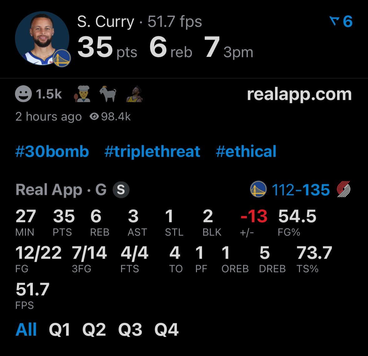 背靠背的库里燃尽了,希望背靠背的比赛库明加能有更多的进攻角色。勇士vs开拓者