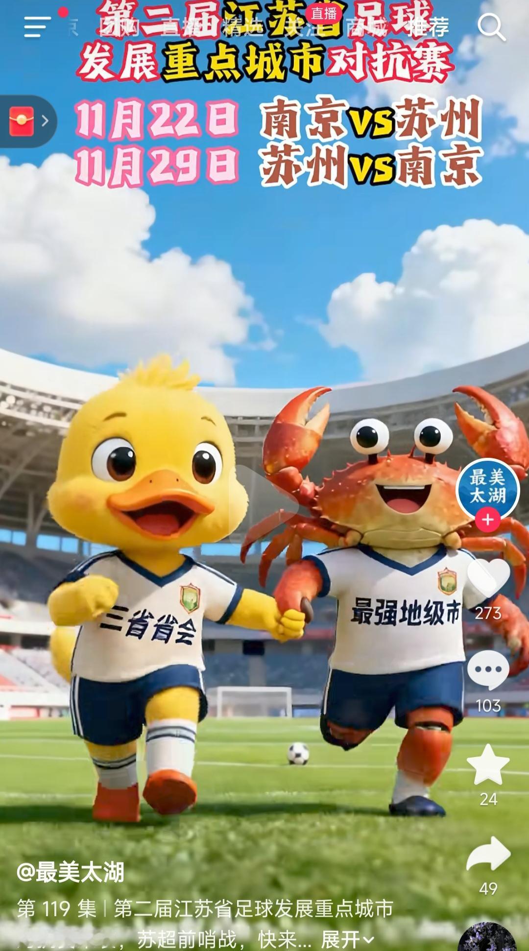 现在国内足球比赛真多,但三省省会南京vs最强地级市苏州,这个比赛一定会看! 这是苏超的开始,很多江苏球迷都会盯着。 按照道理南京更强,但是苏州绝对不认输! 中国应该多搞这种双城争霸,广州vs苏州,成都vs重庆,北京vs上海,对不对![大金牙]