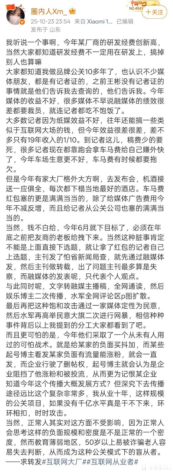 自述做了十几年品牌公关的账号“圈内人xm”,这两天发的2篇关注度比较高的文章,大家怎么看?