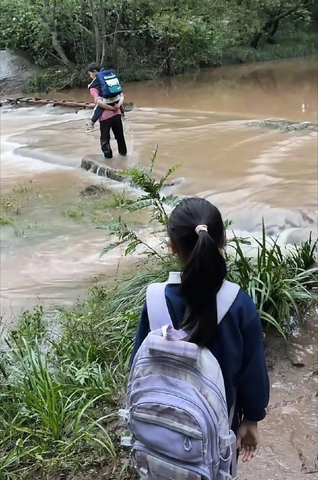一名放学的农家小男孩,面对因雨水暴涨、漫过桥面的溪流,站在浑浊的急流中不知所措。同行的女孩也停在岸边,一时无法过河。 “孩子,站着别动,阿姨来背你!”一位刚干完农活、背着背篓的女子恰巧路过,见状立刻喊道。她毫不犹豫地扔下背篓,迅速踏入水中,一步步走向男孩。 女子蹲下身,轻声安慰:“别着急,趴稳就好。”她背起男孩,在湍急的水流中小心挪步,稳稳将他送到对岸。随后,她又转身返回,把小女孩也安全背了过去。 平安送达后,女子松了口气,叮嘱他们:“快回家吧。”两个孩子感激地离去,而她默默捡起背篓,继续自己的路。 这一幕让人动容——素不相识,却毫不犹豫伸出援手。她这一背,背起的是勇气,是善良,更是人间温暖的重量。 为这样的善举点赞,愿每个需要帮助的时刻,都有这样的温暖相遇。