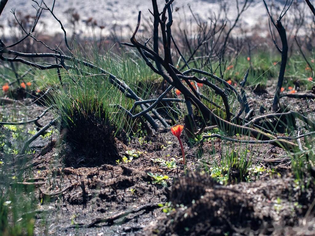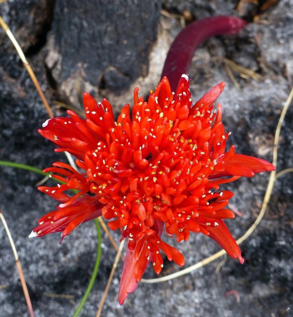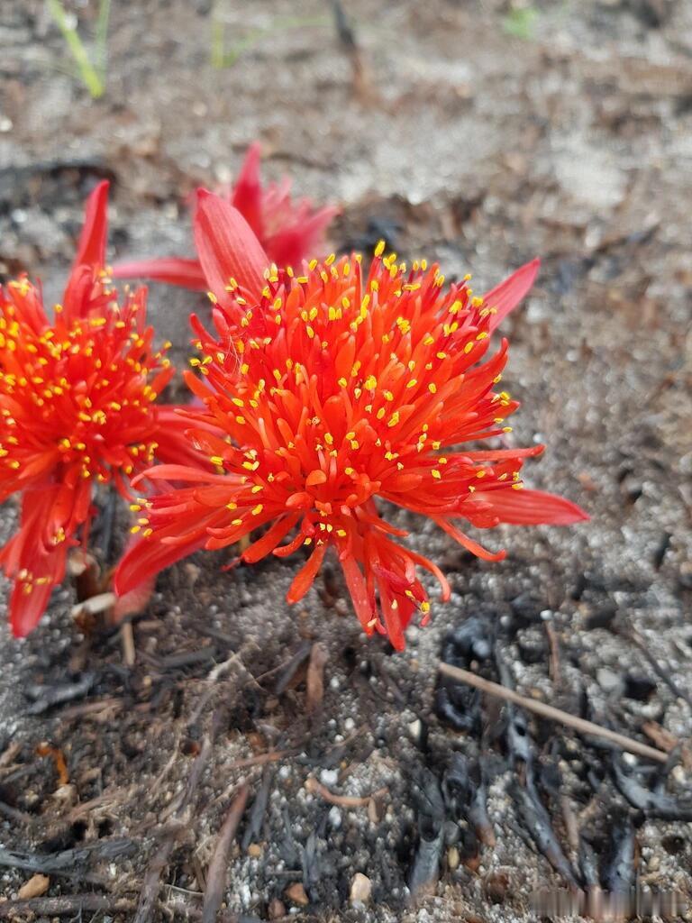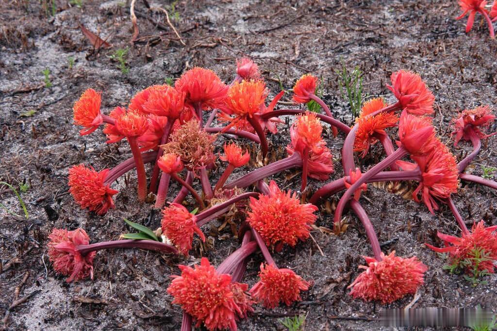 它的生存范围极其狭窄,仅分布在南非Rooi Els到Betty’s Bay的一小段沿海区域,赖在季节性水涝的酸性泥炭沙土里。最绝的是它的“开花密码”——必须等夏季或秋季野火发生,才能绽放,没火就“摆烂”不开,简直是植物界的“烈火爱好者”。花后六周内结出近球状的白色带粉晕果实,叶子则在花后或与花同时长出,冬季生长、夏季休眠,把季节节奏拿捏得死死的⏳。