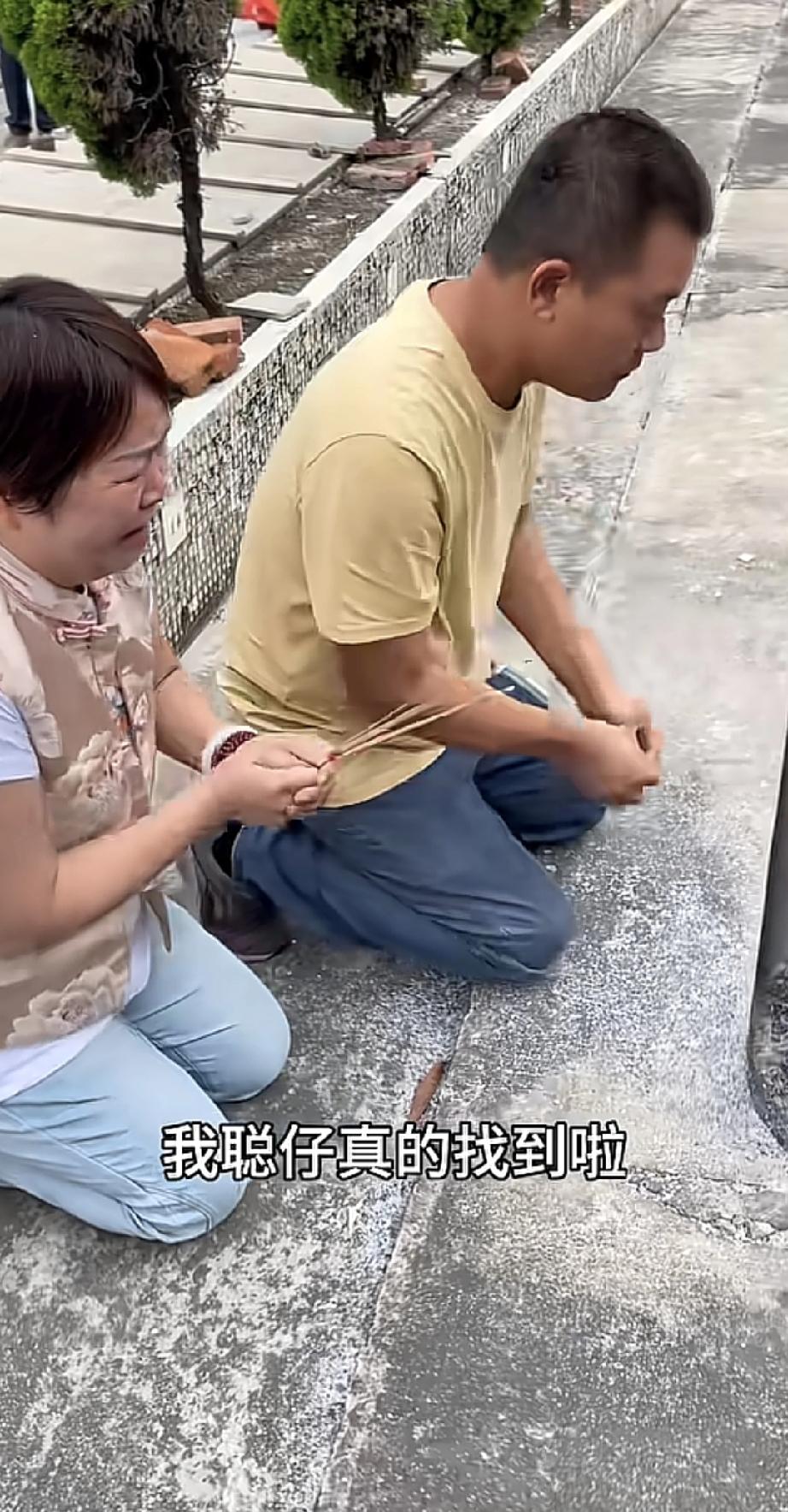 大喇叭在公公墓前哭诉:叶锐聪真的找到了 截止到现在,大喇叭还感觉跟做梦一样的不真实,走到哪里都会跟人说“我儿子找到了”,好像在等对方也能肯定的回应她。 叶锐聪由于着急上课,所以没来得及去祭拜爷爷。 大喇叭送完叶锐聪以后,便买了乳猪等祭品来到爷爷墓前告慰,大喇叭边哭边说:“叶锐聪真的找到了,叶锐聪真的找到了……” 虽然叶锐聪没有亲临现场,但是他全程跟姐姐视频,嘴里一直在讲“爷爷,我回来了!” 真的太不容易了! 不过,大喇叭运气还是很好的,老公没出轨,家也没散,儿子也回来了,往后全家其乐融融!