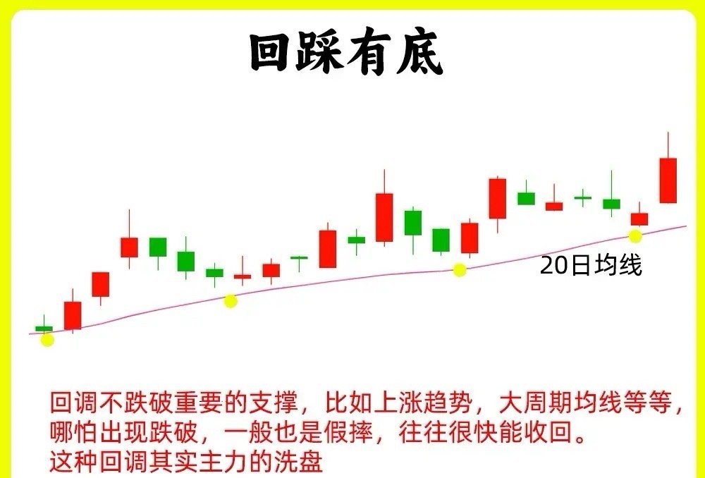 强势股在启动拉升以后,往往会以波浪式的上涨,上涨一段随后回调,但是回调不跌破重要的支撑,比如上涨趋势,大周期均线等等,哪怕出现跌破,一般也是假摔,往往很快能收回。这种回调其实主力的洗盘