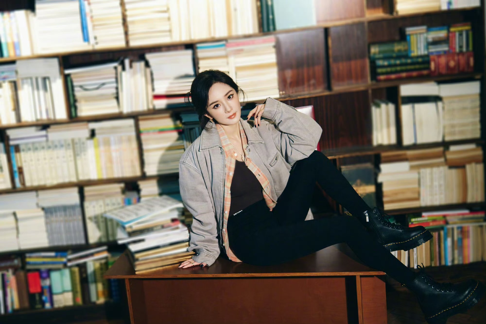 杨幂[超话]杨幂图书馆眼神杀杨幂在书堆里的时尚感杨幂时尚表现力好强啊