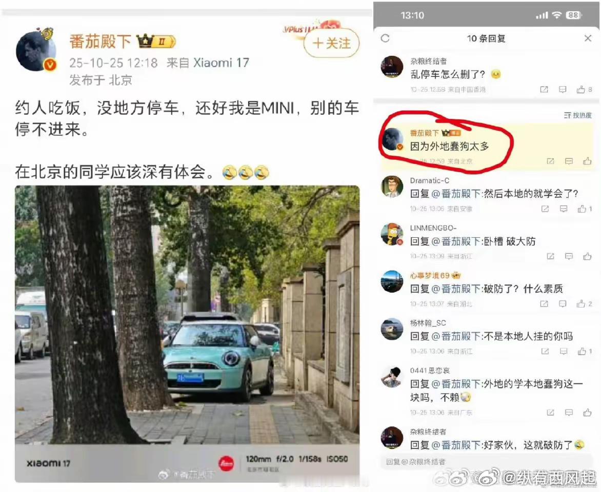 违停还占用盲道,骂人还搞地域歧视,也是没谁了[摊手]